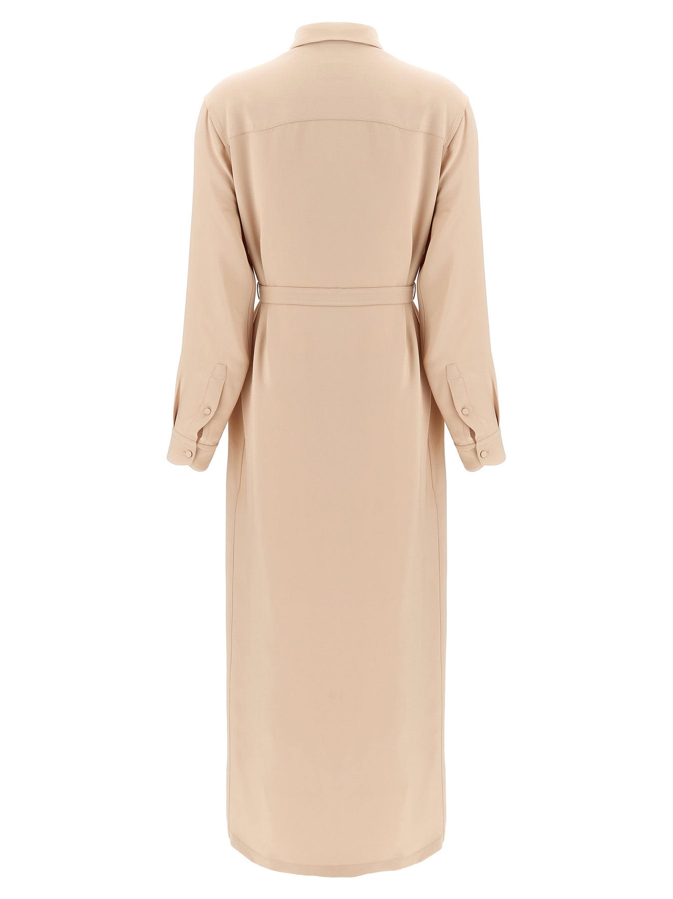 Long 'Workwear' silk cady dress, chemisier model, concealed front button closure, pockets, long cuffed sleeves, removable belt.