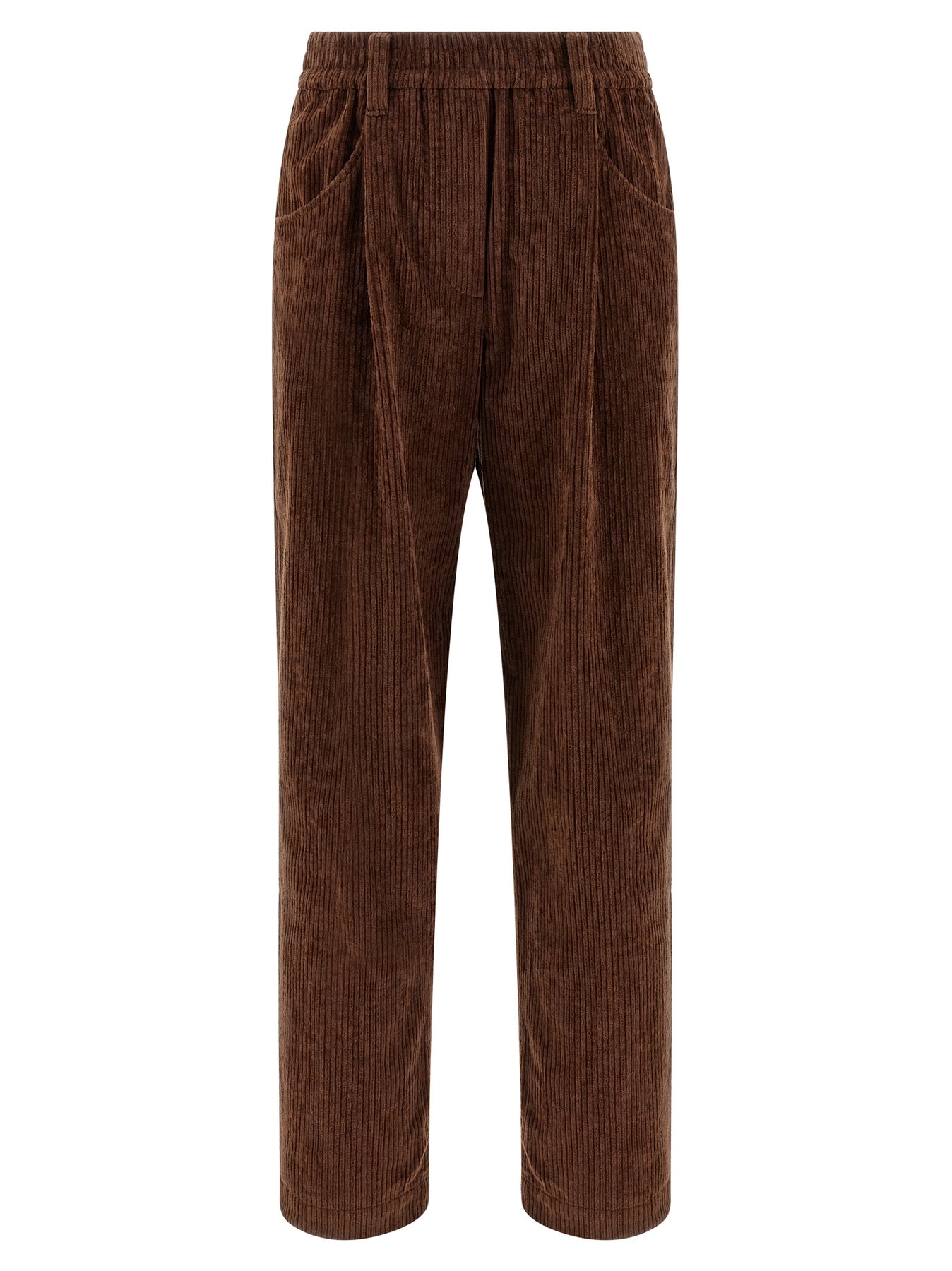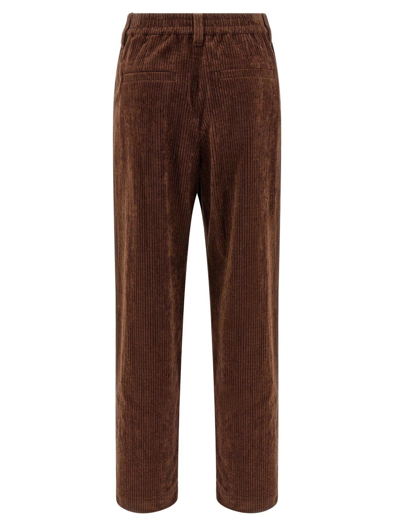 'Baggy' cotton corduroy trousers with ribbed comfort, elastic waistband, trompe l'oeil flap, pins, straight leg, pockets.