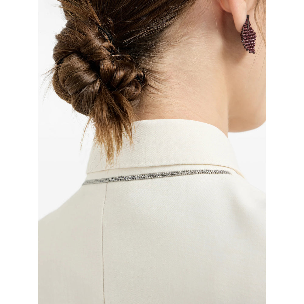 ivory monili detail double-breasted button fastening peak lapels flap pockets