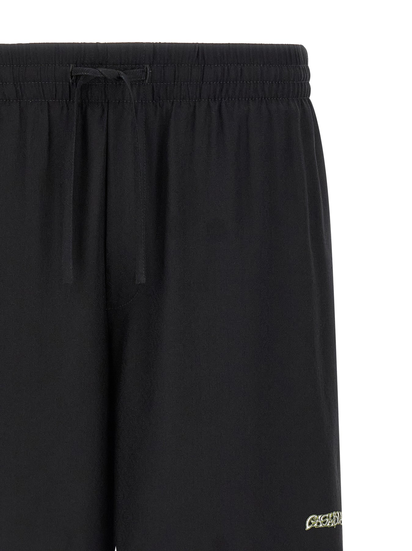 Jacquard monogram silk bermuda shorts, front logo print, back 'Volcano' print, drawstring elastic waistband, trompe l'oeil flap, pockets.
