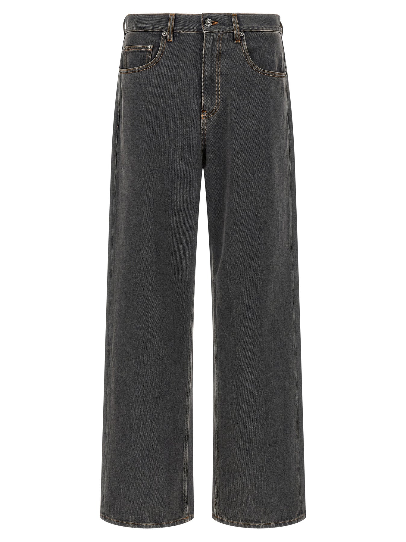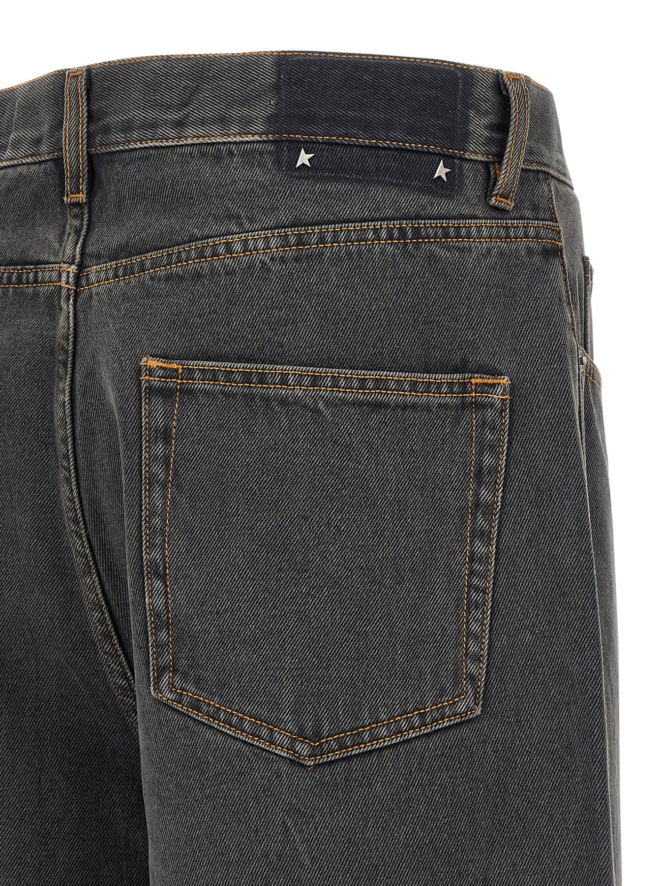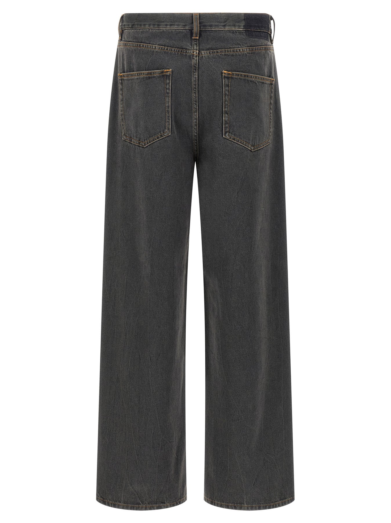 'Morgan' cotton denim jeans with contrast stitching, wide and straight leg, front zip and button closure, five pockets, back trompe l'oeil logo tag.