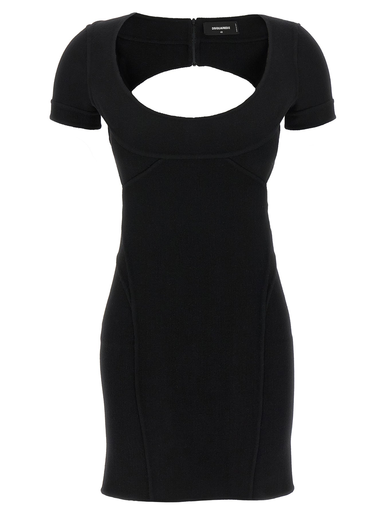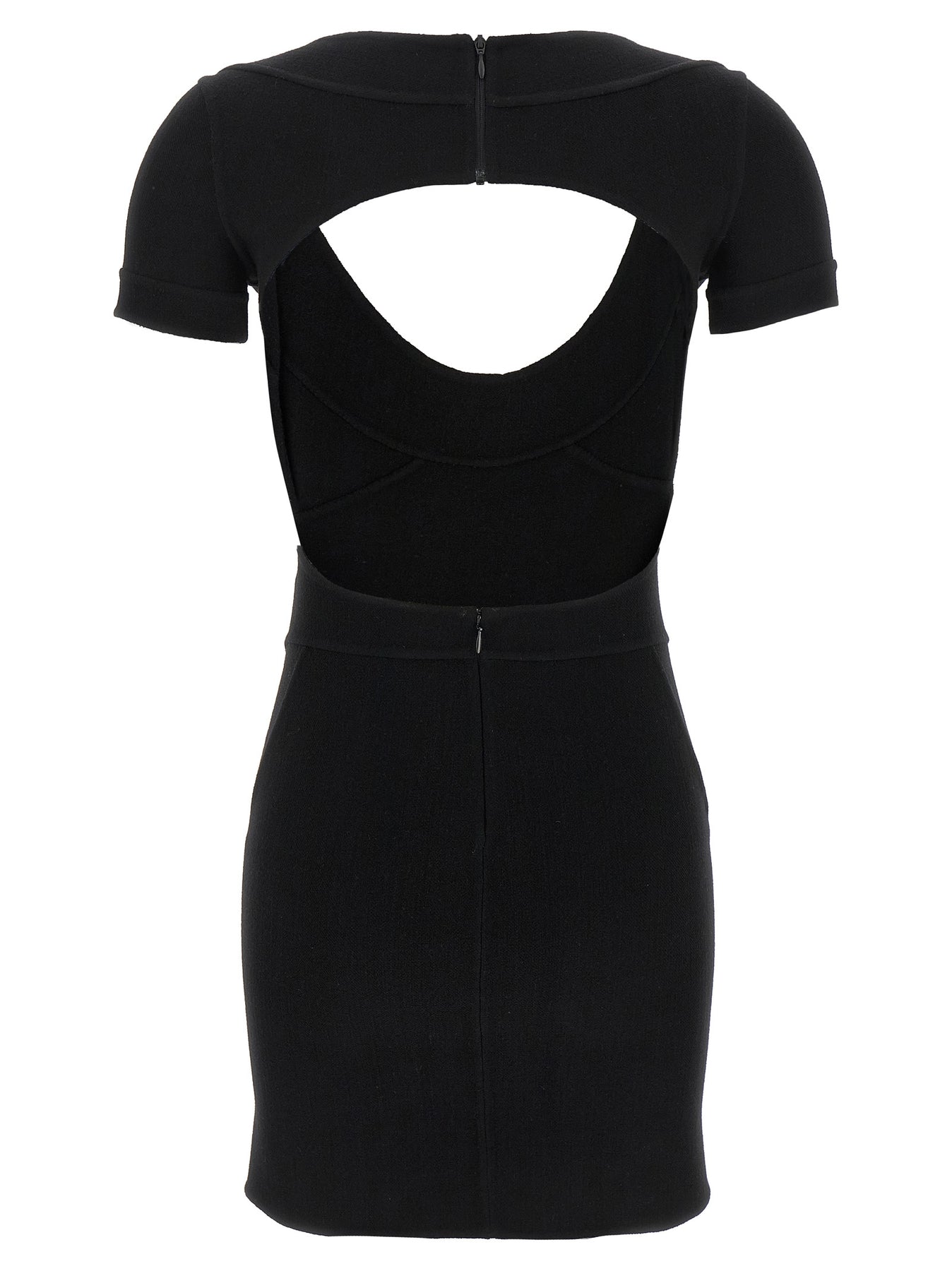 'Bodycon Cut Out' stretch knit mini dress with back opening, zip closure, short sleeves.
