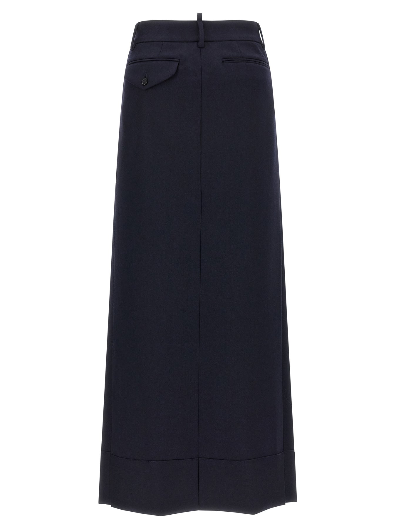 Osaka' long wool skirt with cotton denim front insert, button closure, five pockets, side pleats and wide front split.