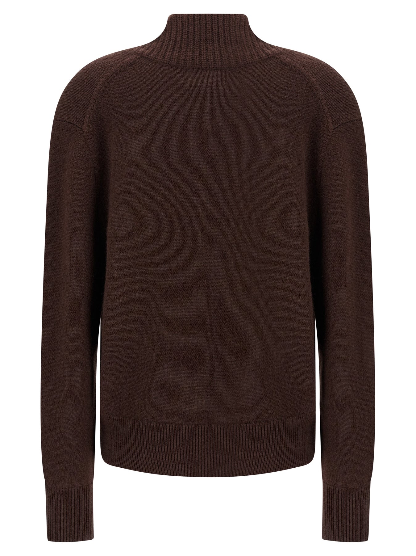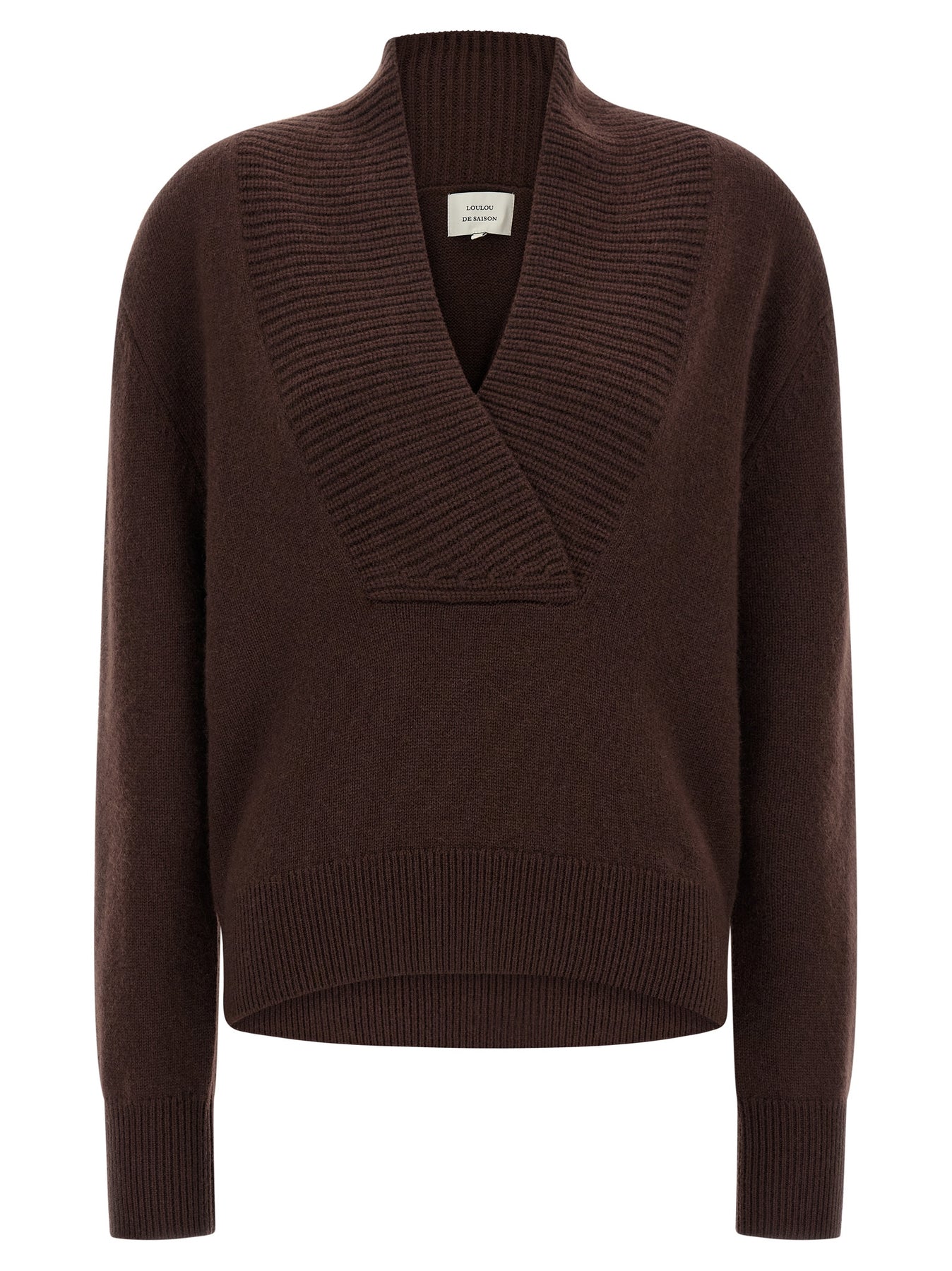 'Makela' cashmere sweater with crossed V-neck, tone-on-tone embroidered logo on the front, long cuffed sleeves.