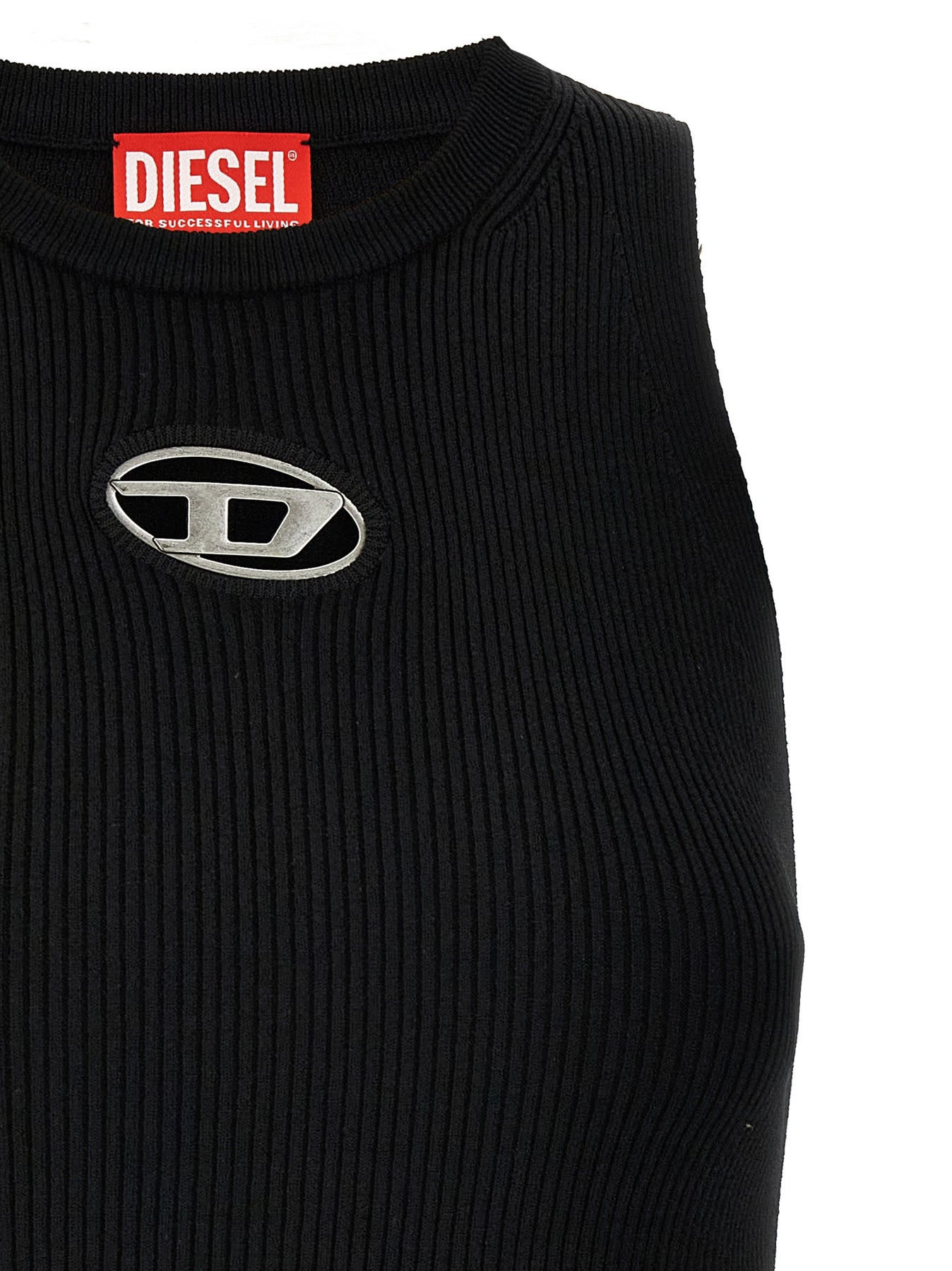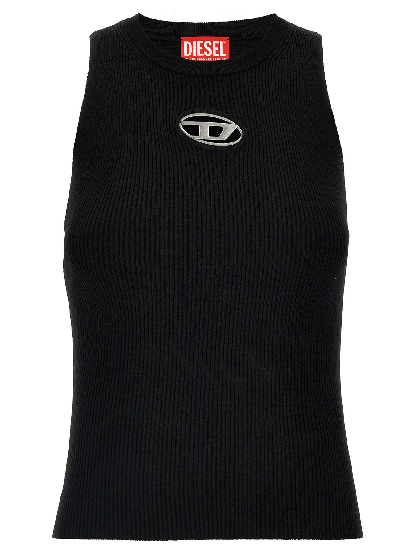 'M-Caddix-Top' ribbed knit tank top with crew neck, cut-out detail with Oval D metal logo on the front.