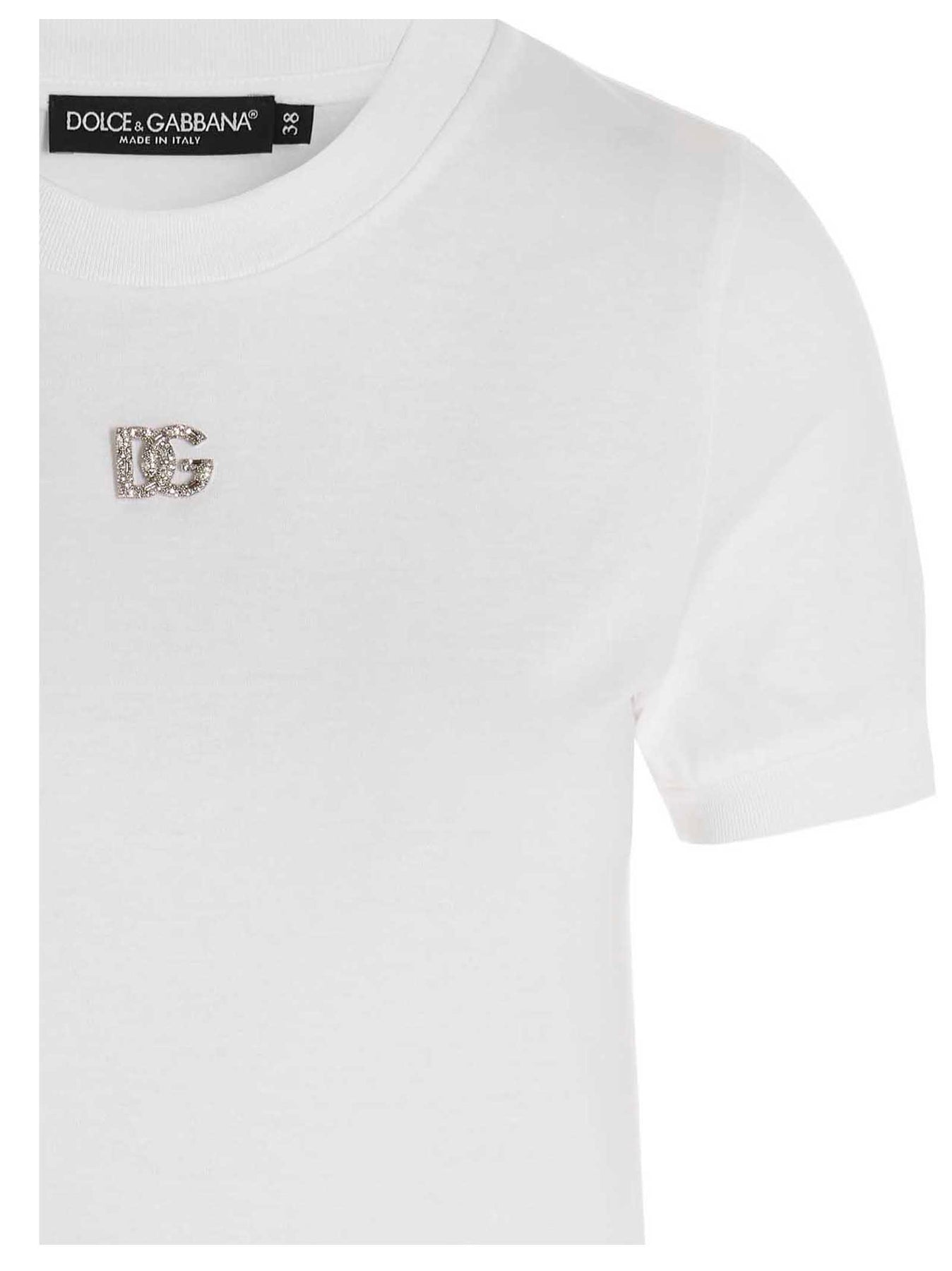 Cotton crew-neck t-shirt with jewel logo pin.