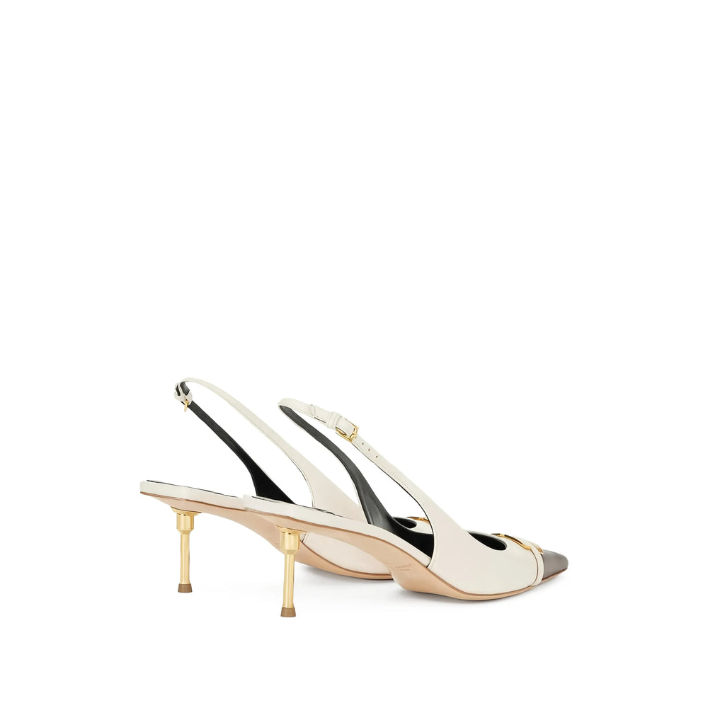 butter/cocoa logo detail gold-tone hardware pointed toe slingback strap