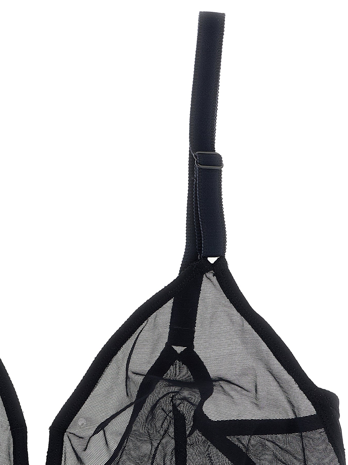 'Providence' stretch tulle bra, triangle model without underwires, V-neck with underwires, straight back structure with pleats, adjustable straps, back hook closure.