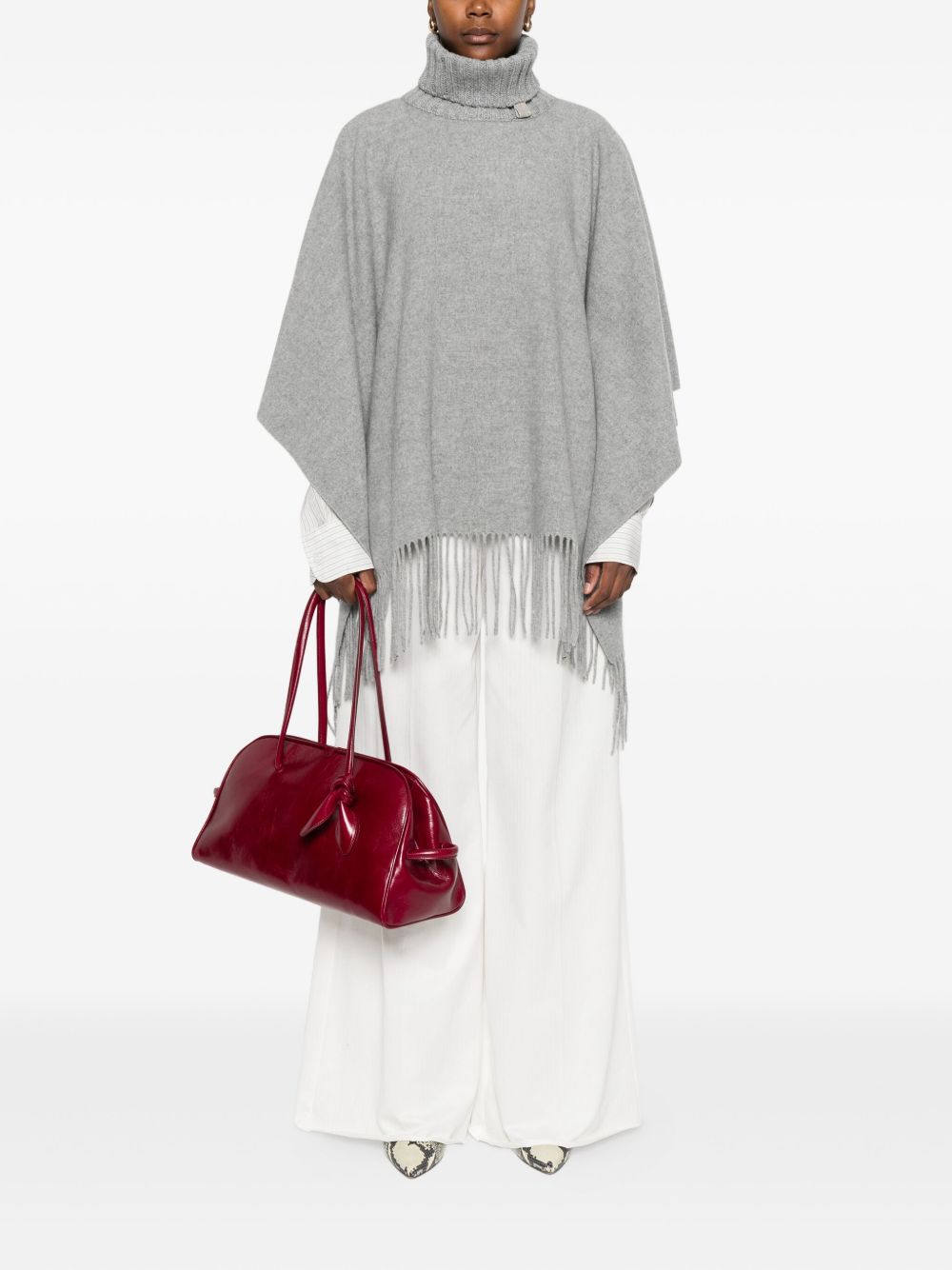 grey wool-silk-cashmere blend ribbed collar fringed hem
