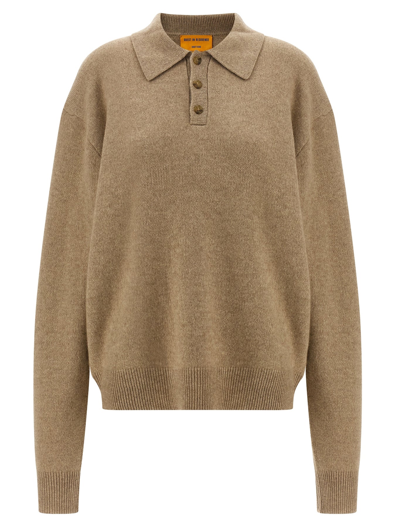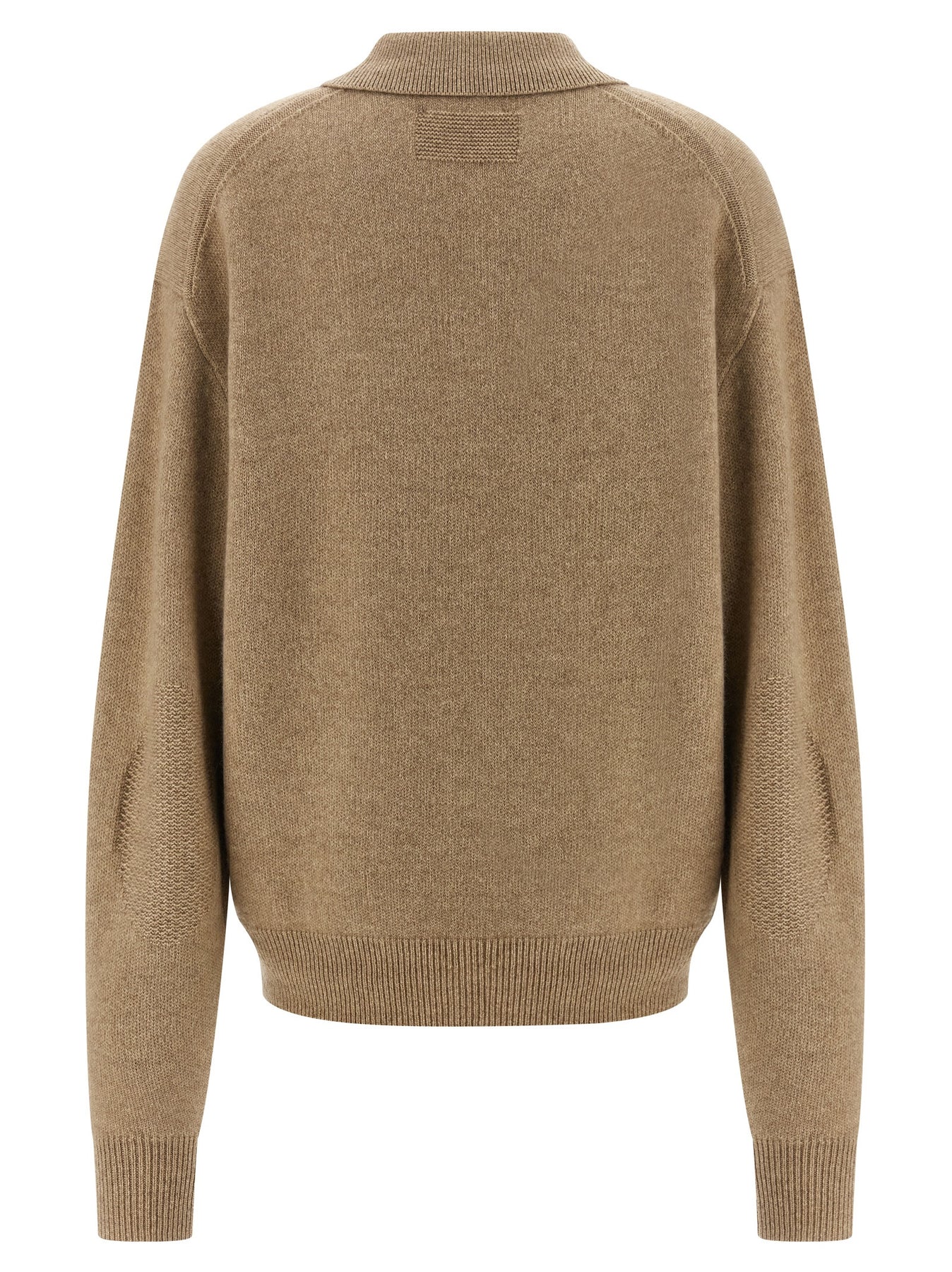 'Allday' medium-weight cashmere polo shirt with collar and buttons, long cuffed sleeves, dropped shoulder and different weave on the elbow.