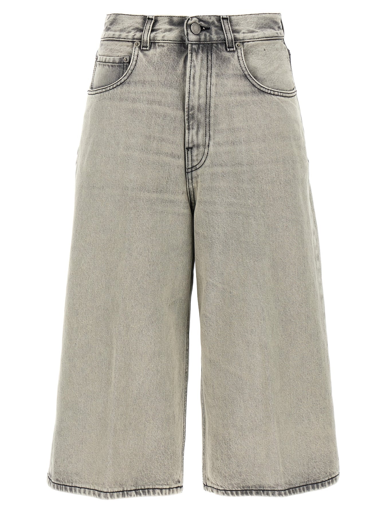 Cotton denim ‘Belle Pearl Grey’ Bermuda shorts, zipper and button closure, five pockets, wide leg.