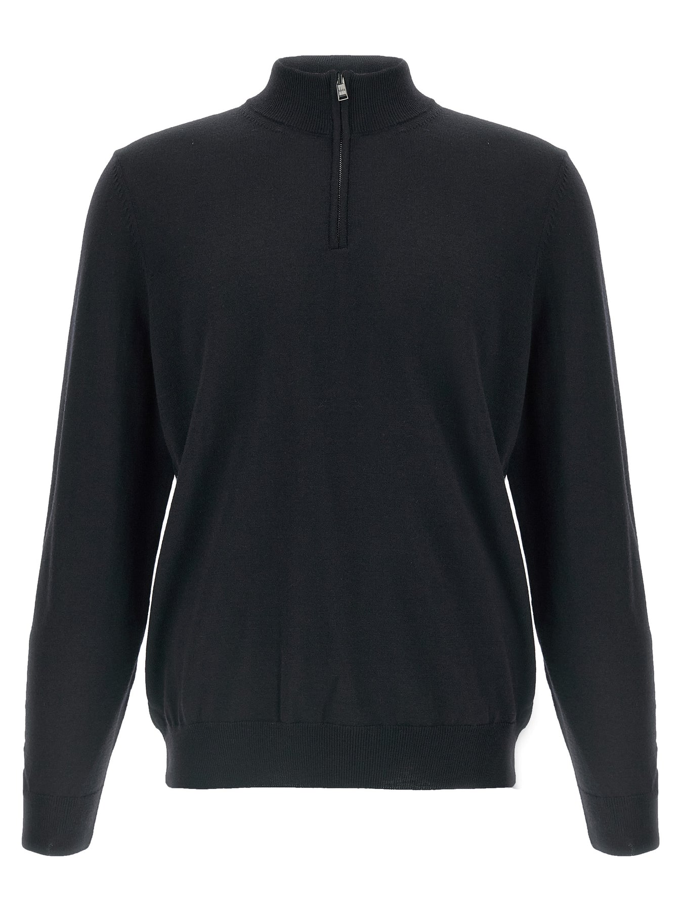 Virgin wool 'Ebenji' sweater with half zip, long cuffed sleeves. SUSTAINABLE: product made with wool from responsible farms.