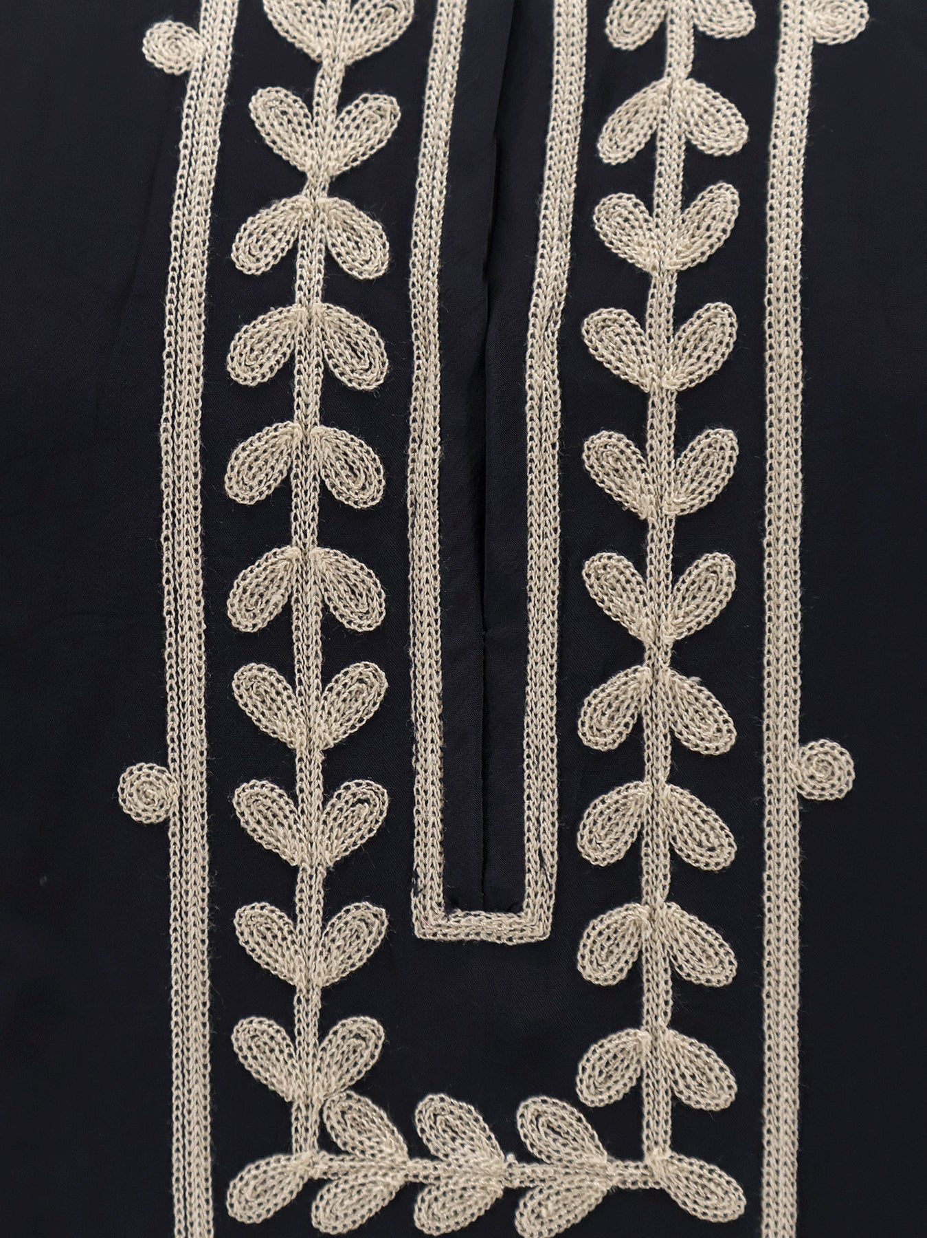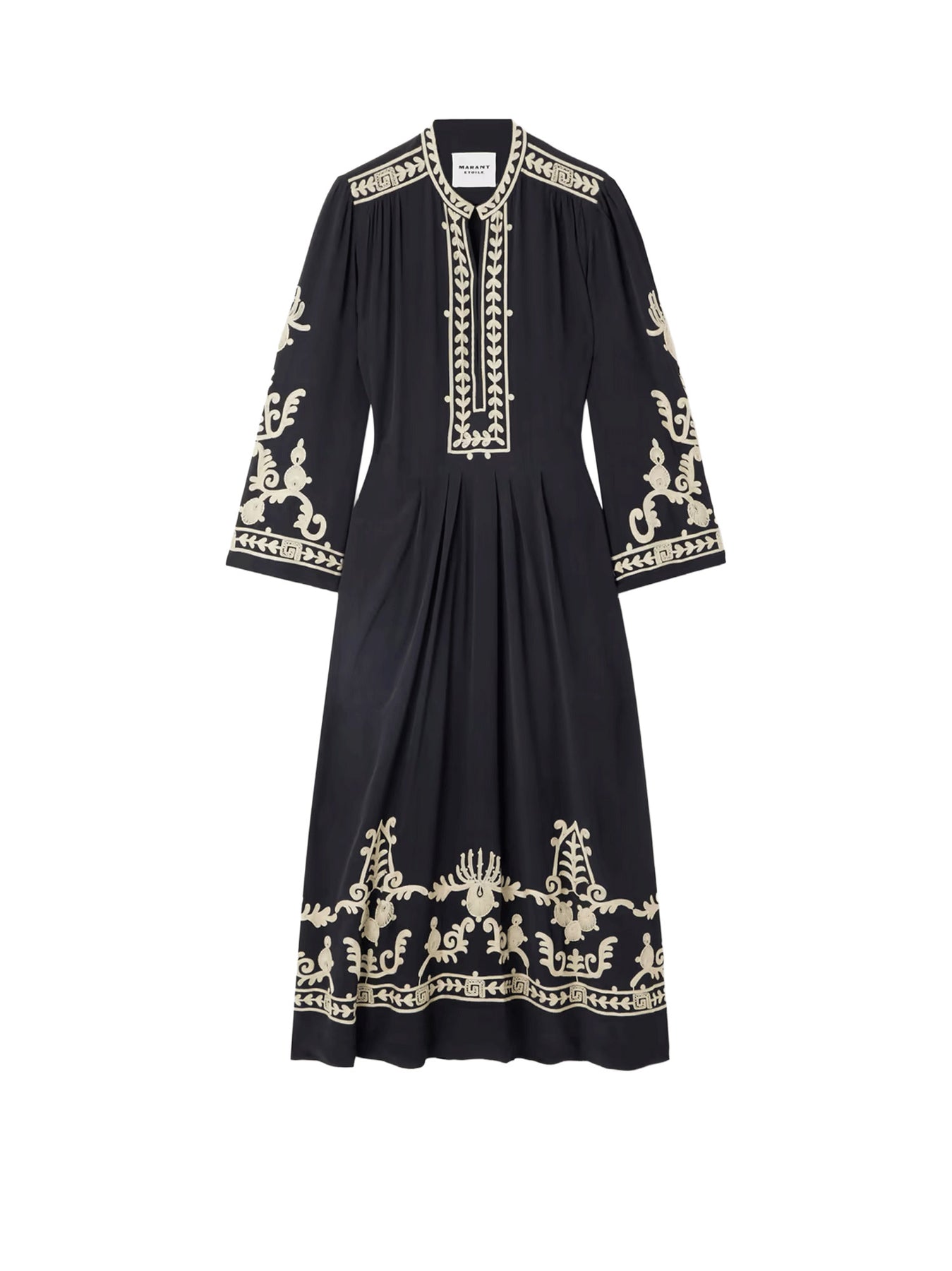 Side zip closure Contrasting embroidery Neckline with hook closure Long sleeves 100% viscose Lining: 100% viscose SKU: RO0788FAC3J02E01BK