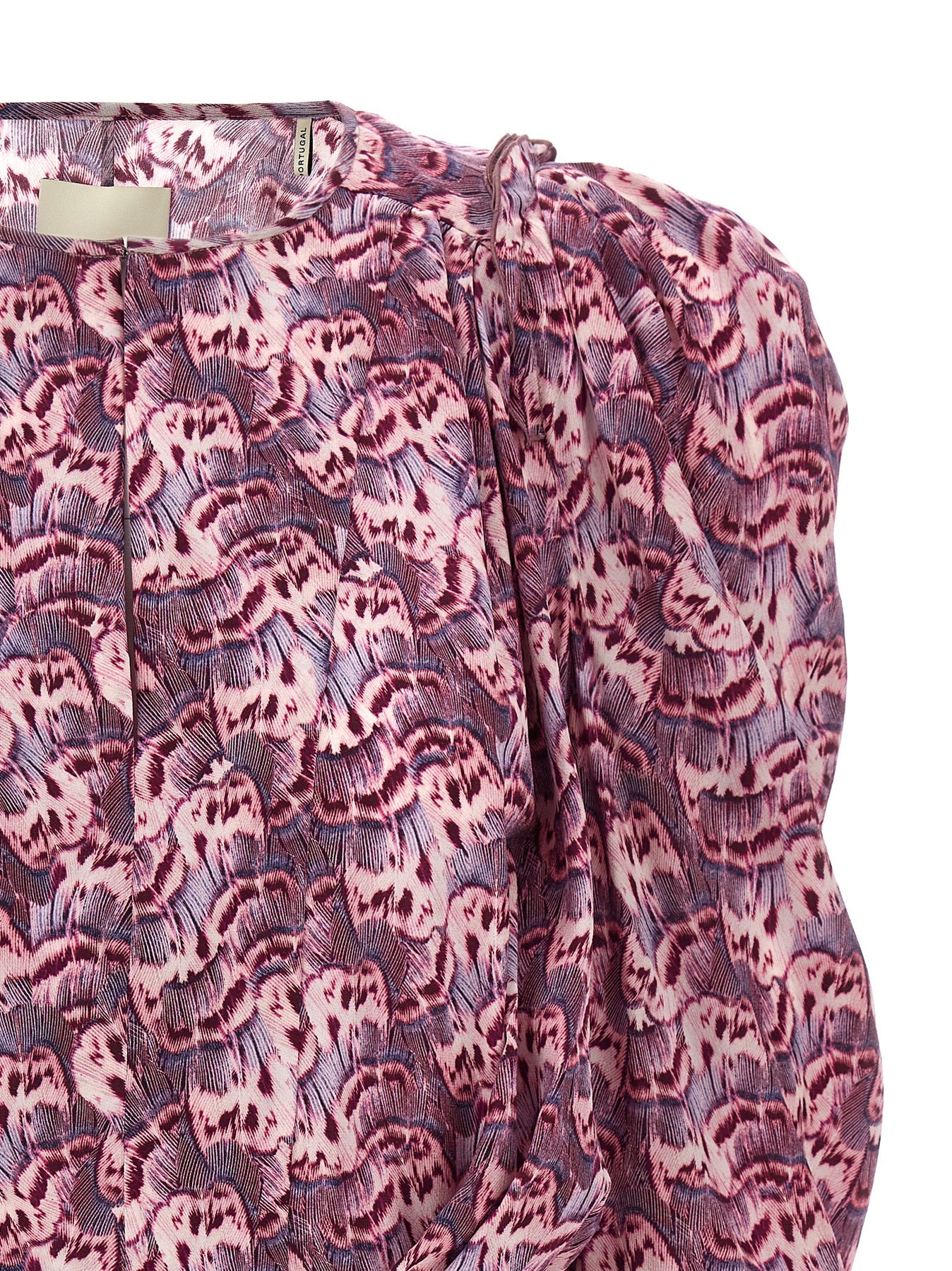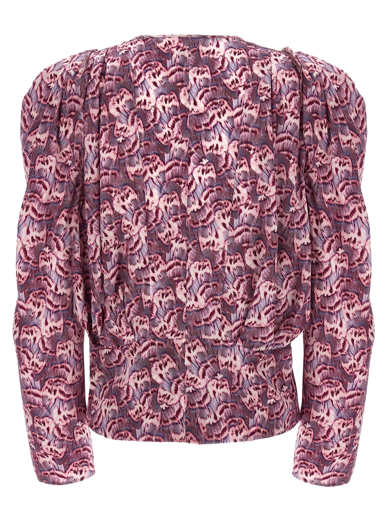 'Zarga' stretch silk blouse with all-over print, V-neck, long sleeves and puff shoulder straps.