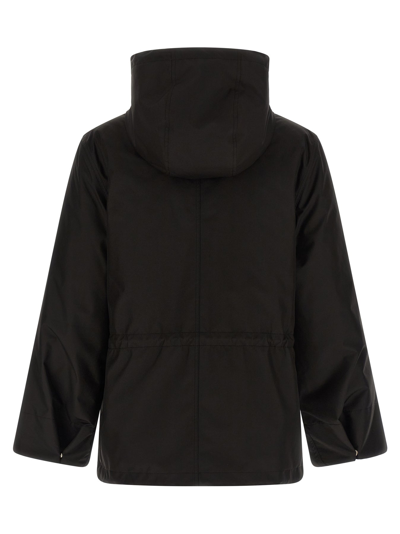2-in-1 parka consisting of technical fabric exterior, adjustable hood, zip closure and front snap buttons, pockets, long sleeves, drawstring at the waist and on the bottom of the garment and removable inner part in quilted technical fabric, mink fur insert, front zip closure.