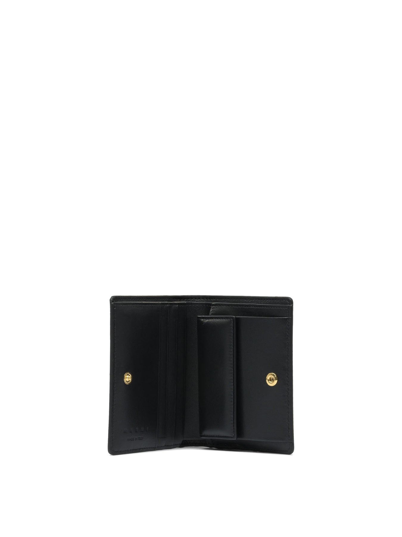 Marni's "Envelope" wallet represents a meeting of elegance and functionality, intended for a female clientele that appreciates distinctive details. With an essential and refined design, this wallet is perfect for those seeking an accessory capable of combining practicality and style in a single object. The influence of Marni's iconic lines is evident, making each use a unique experience that underscores the quality craftsmanship of the product. || - Calfskin leather bifold wallet - Enamel detail inspired by the clasp of the iconic Trunkaroo bag - Concealed snap button closure - Coin pocket - Banknote compartment - Four card slots