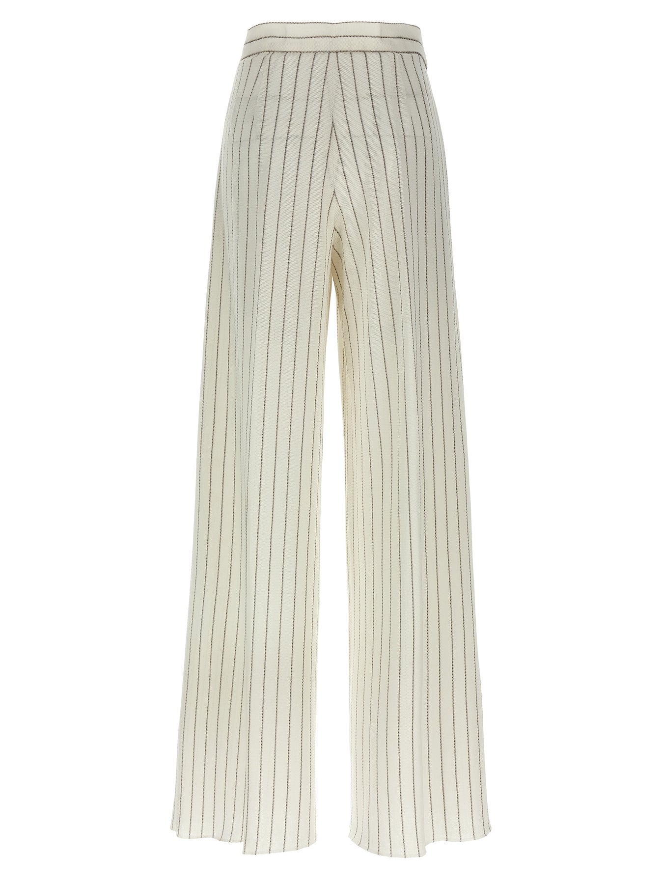 'Clarion' pants in pinstriped cotton and linen blend, wide leg, zip, hook and front button closure, pockets.