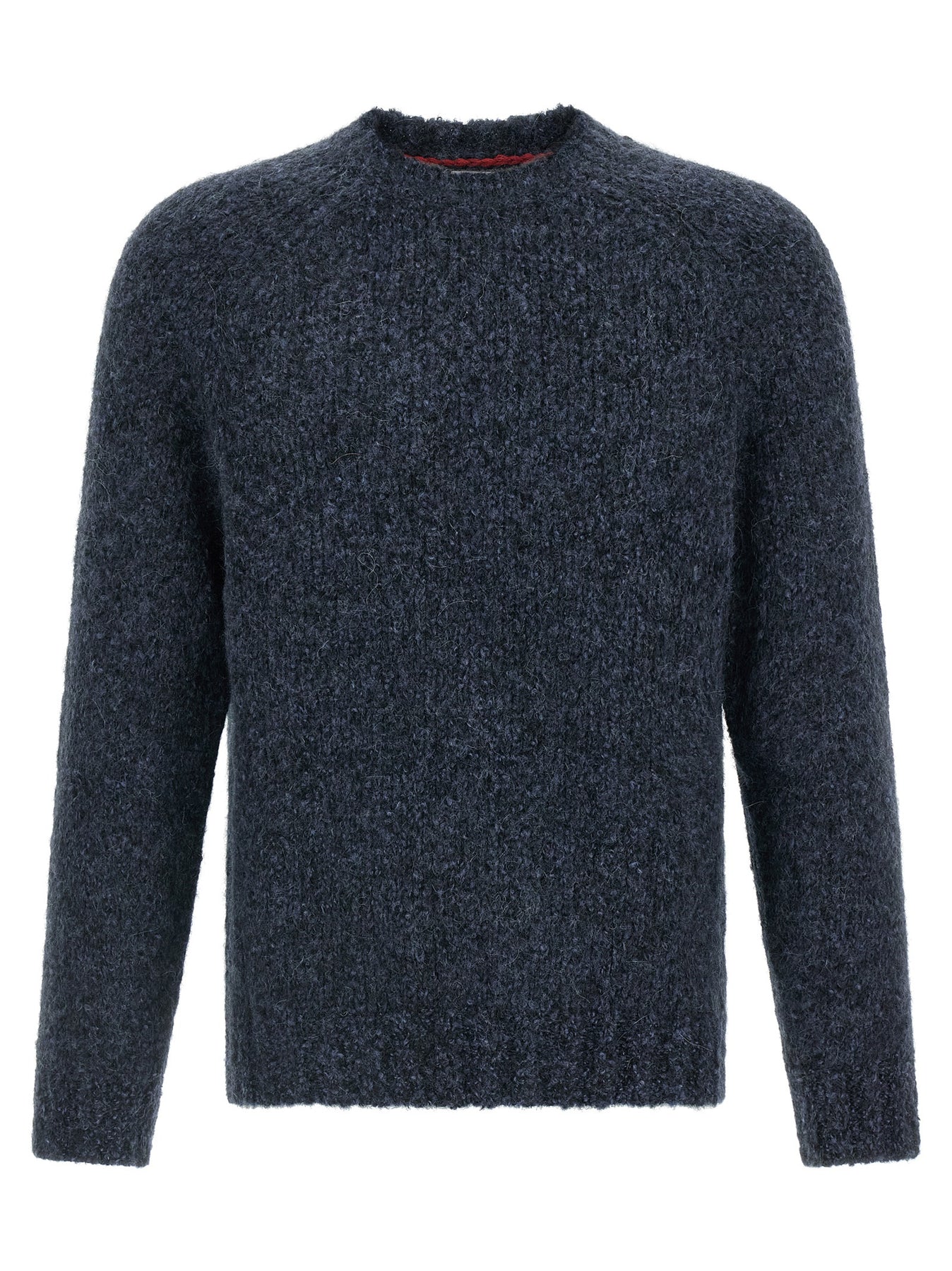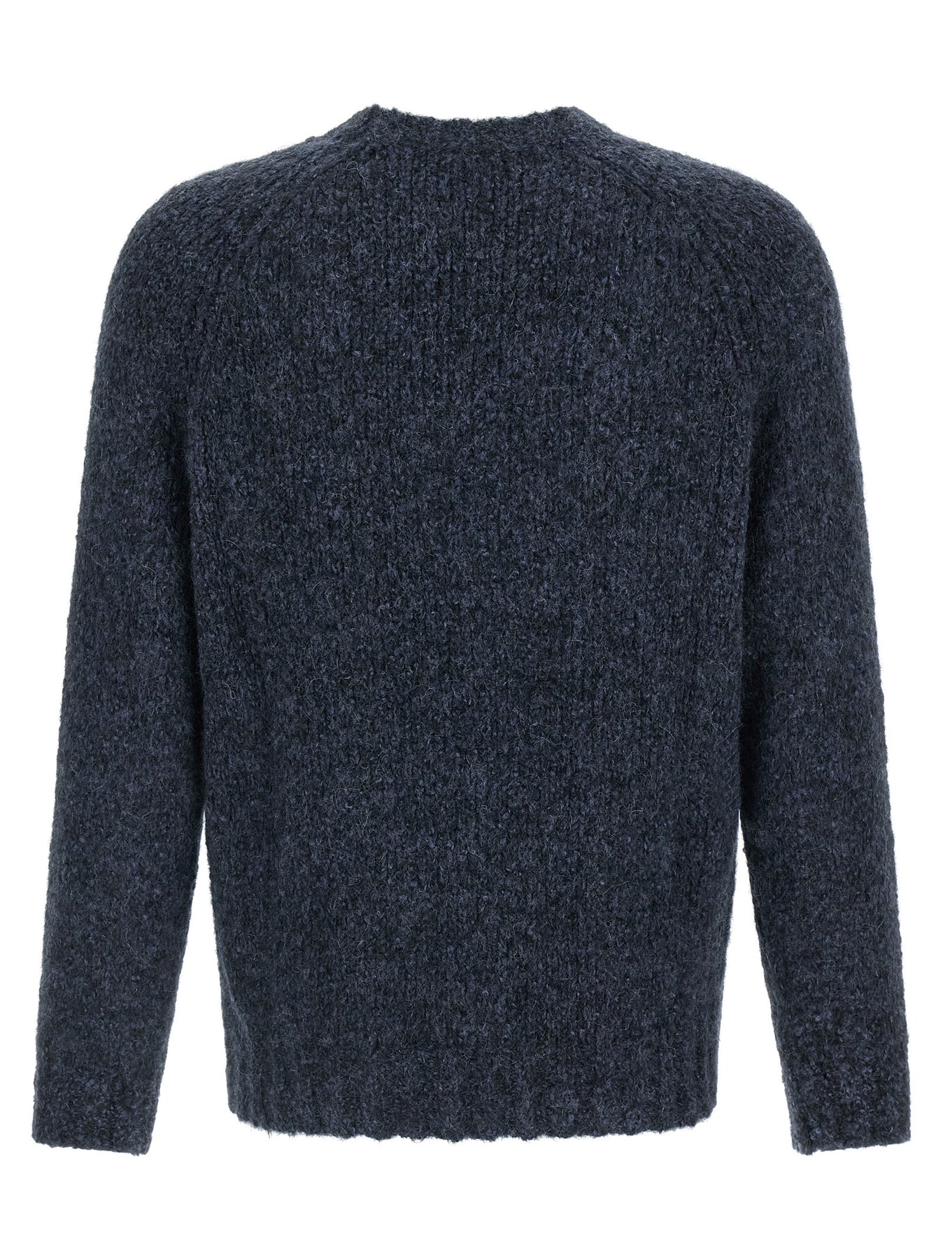 Sweater in alpaca buttoned yarn, virgin wool and cashmere, crew neck, long raglan sleeves with cuffs.