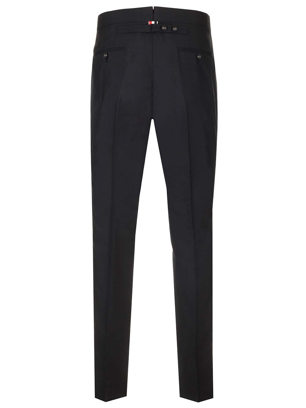 Skinny wool and polyester trousers from Thom Browne, featuring front pleats, hook-and-eye fastening and welt pockets.