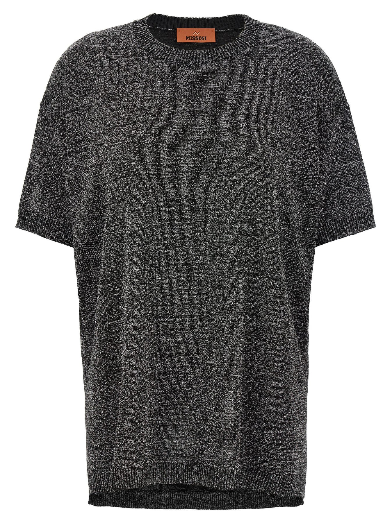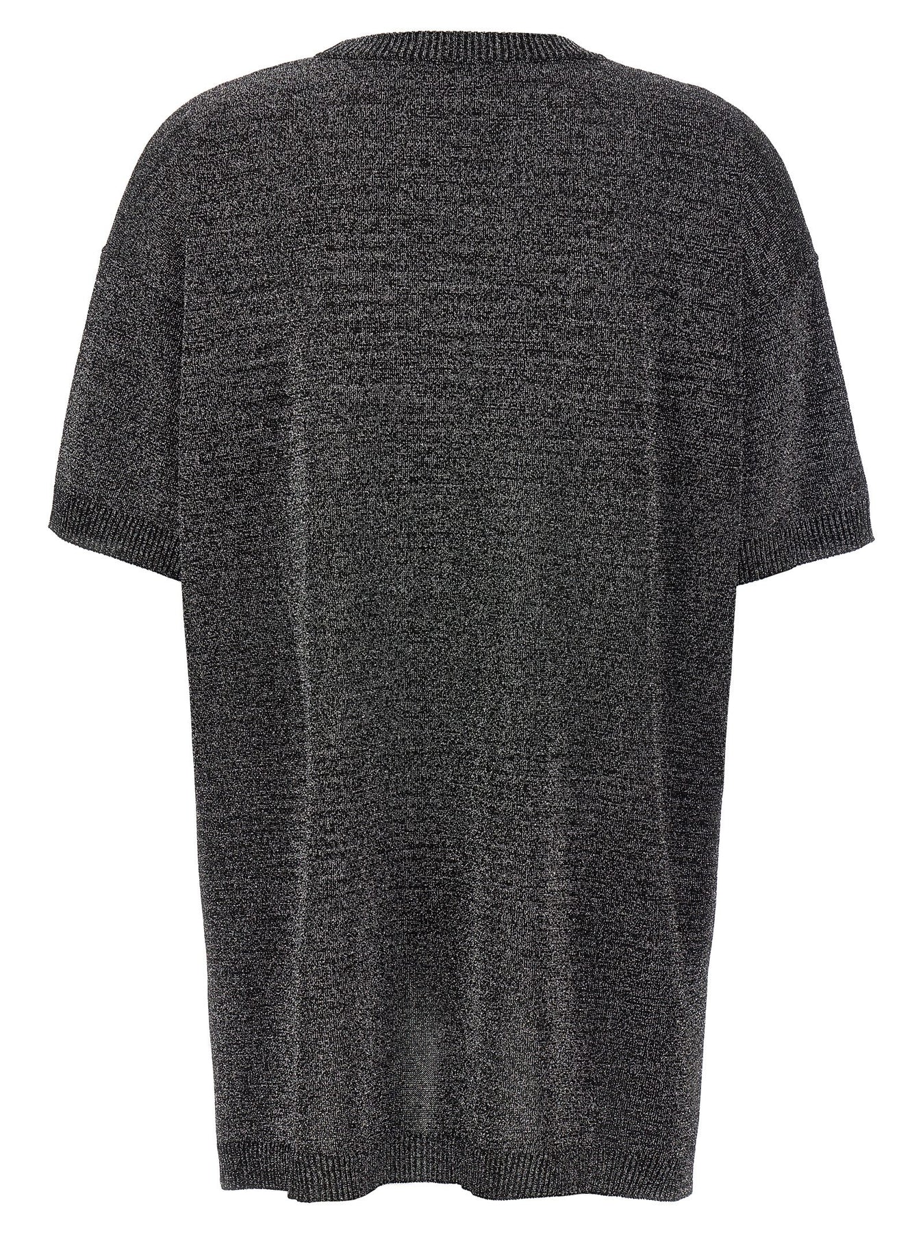 Lurex knit t-shirt, crew neck, loose fit, short sleeves.