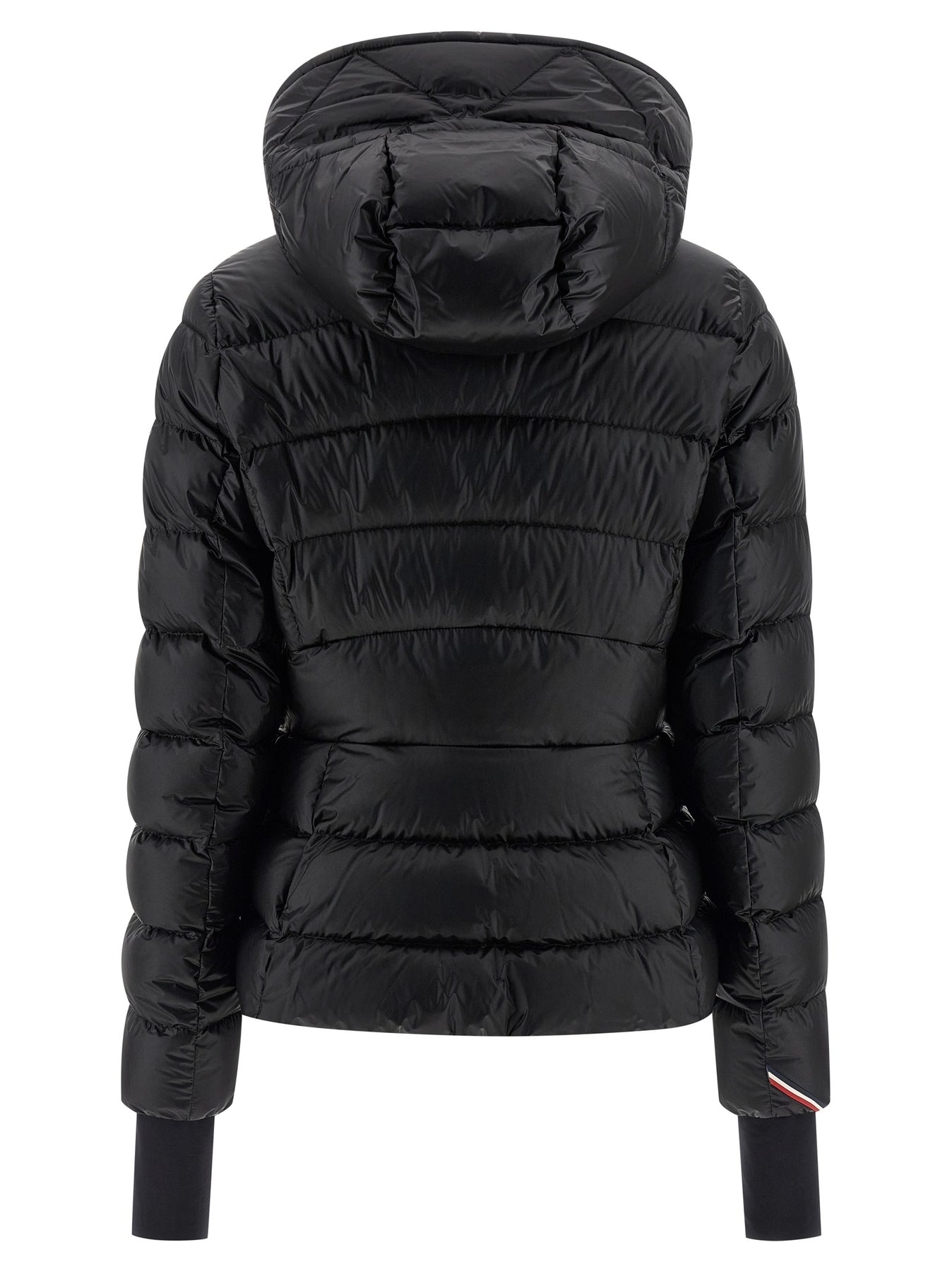 'Armoniques' short down jacket in 2L water-repellent nylon léger technique quilted and goose down padding, adjustable hood, high neck, YKK® AquaGuard® Highly Water-Resistant zip closure and front snap buttons, pockets, long sleeves with windproof cuffs and logo patch, asymmetrical hem with inner gaiter.