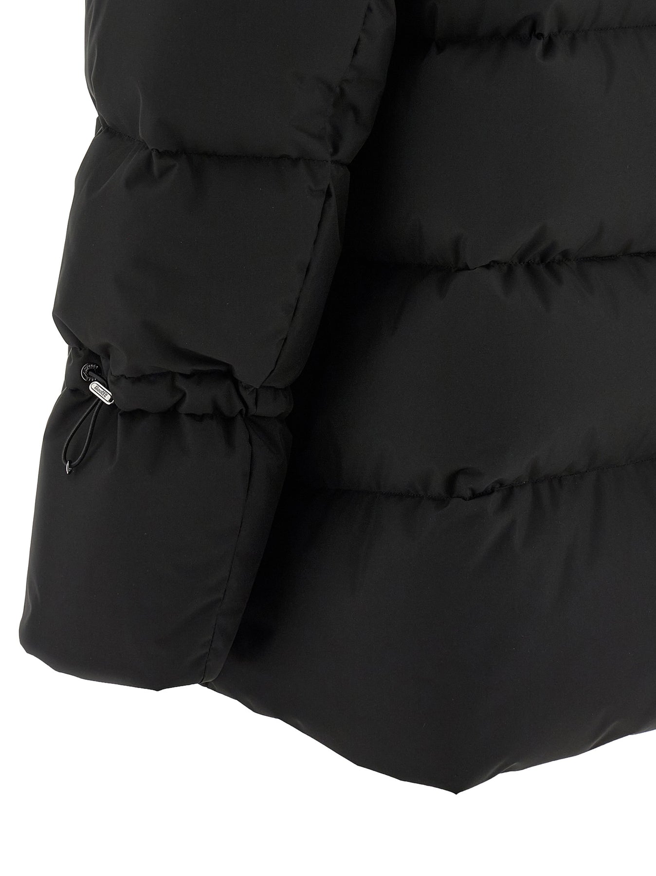 'Gadia' down jacket in technical fabric with a silky appearance quilted with large boudin padding, goose down and water-repellent, trapezoid line, adjustable hood, high neck, front zip closure, pockets, long sleeves with drawstring on the wrist, drawstring on the hem.
