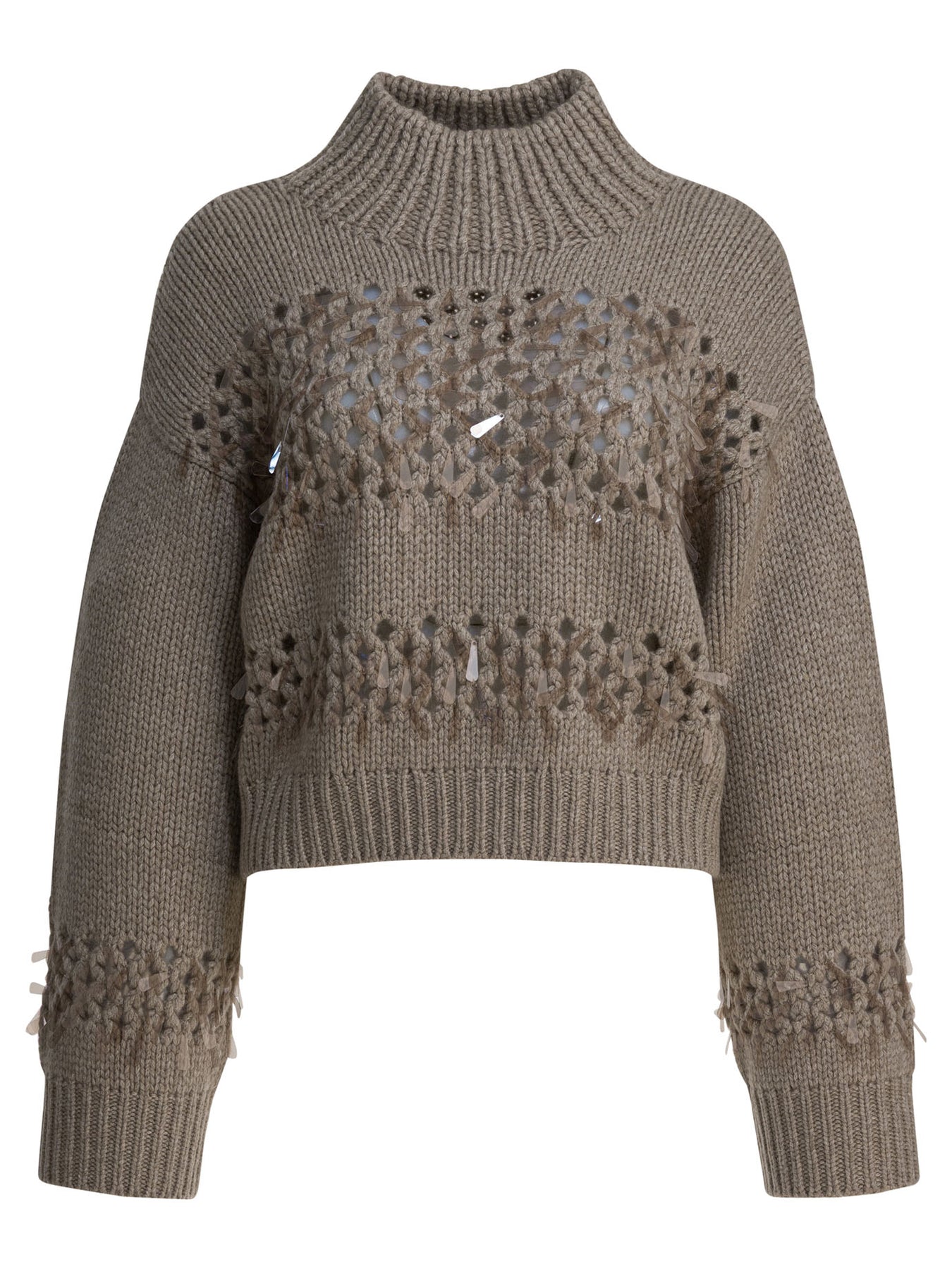 Embellished Cashmere Crewneck Sweater Knitwear Brown