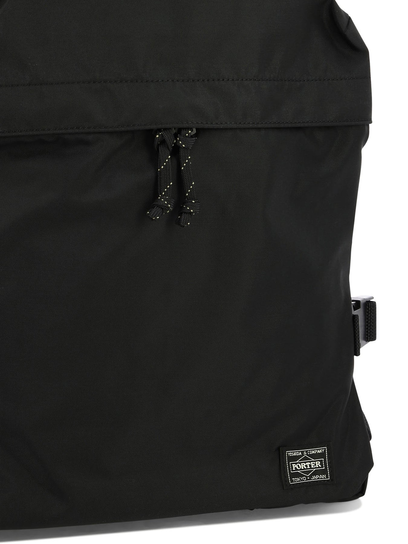 Porter-Yoshida & Co's "Hybrid Daypack" backpack, constructed of industrial woven 210-denier nylon 6-strength fabric, employs a contoured structure to promote portability and internal order. The workmanship incorporates a subtle difference between the main body fabric and the front pocket fabric, generating visual surface variations. The interior uses quilted ripstop nylon, and the silhouette follows essential and functional lines. || - High-strength nylon outer fabric - Surface finish with strong vertical stripes - Quilted ripstop nylon interior - Removable interior pocket that can be used as storage - Inspiration from construction details typical of military equipment