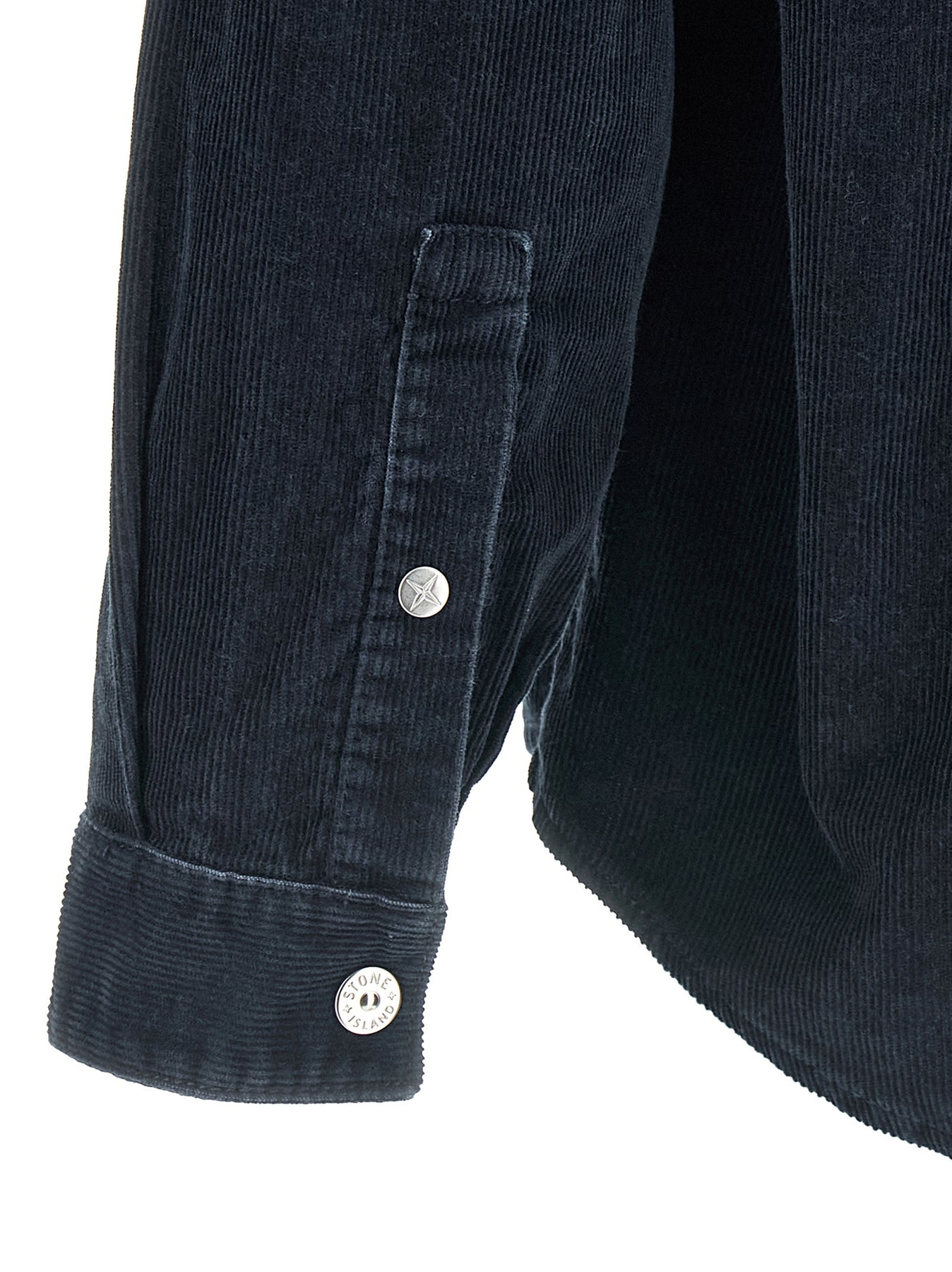 Garment-dyed 800 organic cotton corduroy shirt, front snap button closure, pockets, long sleeves with cuffs and logo badge.