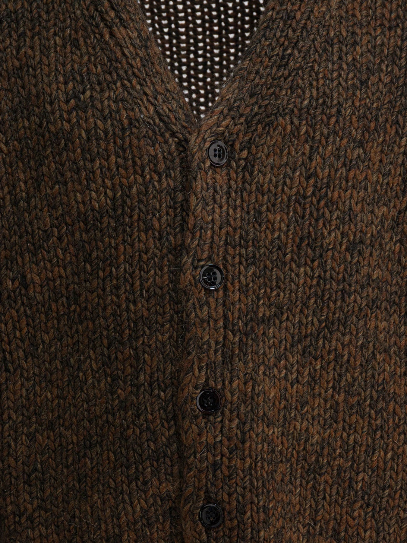 Wool-blend "Osky" cardigan NN.07 made from a mouliné yarn combining wool and alpaca wool. Knitted structure with a soft and full-bodied texture. Features a straight line and essential details, with front closure by corozo buttons. Seams remain linear for a clean look without additional embellishments. The silhouette maintains regular proportions on the bust and sleeves. || - Mélange - Long sleeves - Wool, acrylic and alpaca blend yarn - Corozo buttons - Regular fit
