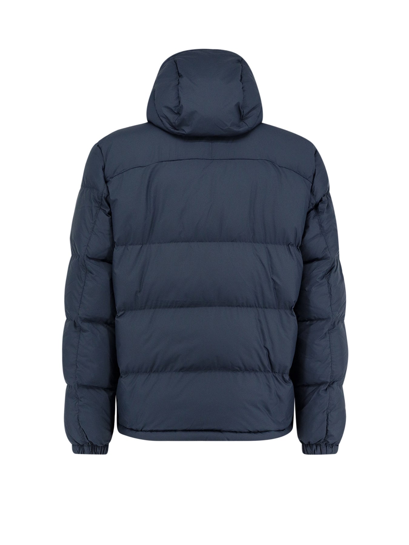 Zip and double slider closure Removable padded hood Front zip pockets Logo embroidery on the front Bottom with adjustable drawstring 100% recycled polyester Padding: 75% down 25% feather (RDS) SKU: 710968278003