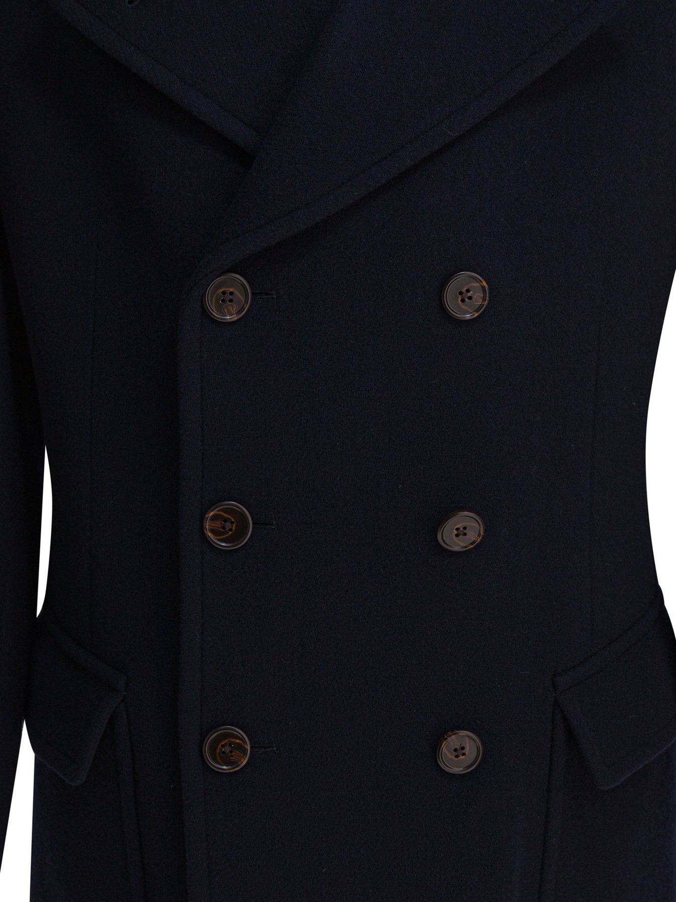 Polo Ralph Lauren's "Polo Soft Tailored" coat represents timeless elegance with a silhouette that combines tradition and modernity. This garment is designed for the man who appreciates classic style reinterpreted with a contemporary twist. Made with a double-face fabric, it offers a harmonious balance between comfort and sophistication, making it ideal for those looking for an outerwear that will stylishly accompany winter days. || - Solid color - Long sleeves - Regular fit - Contoured cut at the chest and waist - Semi-lined pattern for a less structured design - Soft, natural shoulders for a comfortable fit - 8.5-cm lapels with buttonhole on left lapel - Double-breasted silhouette and long sleeves - Two flap pockets at waist and martingale at back - Environmentally sustainable product