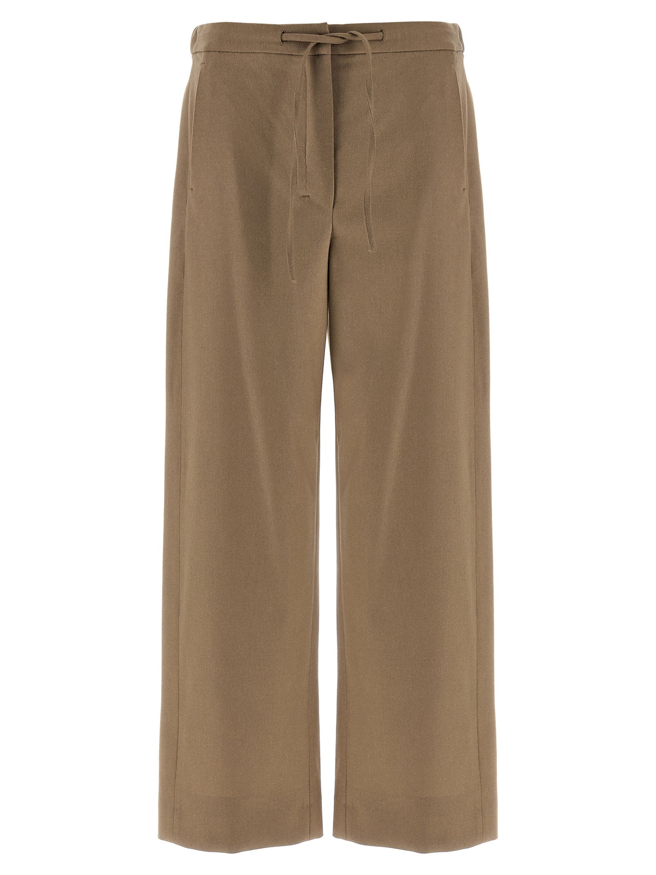 'Floria' stretch wool flannel joggers, wide and straight leg, elastic with adjustable drawstring at the waist, zip, hook and front button closure, pockets.