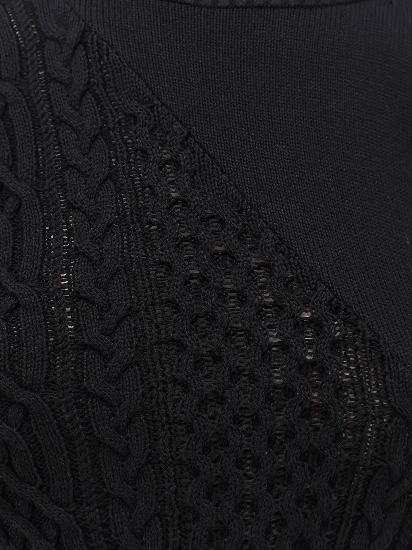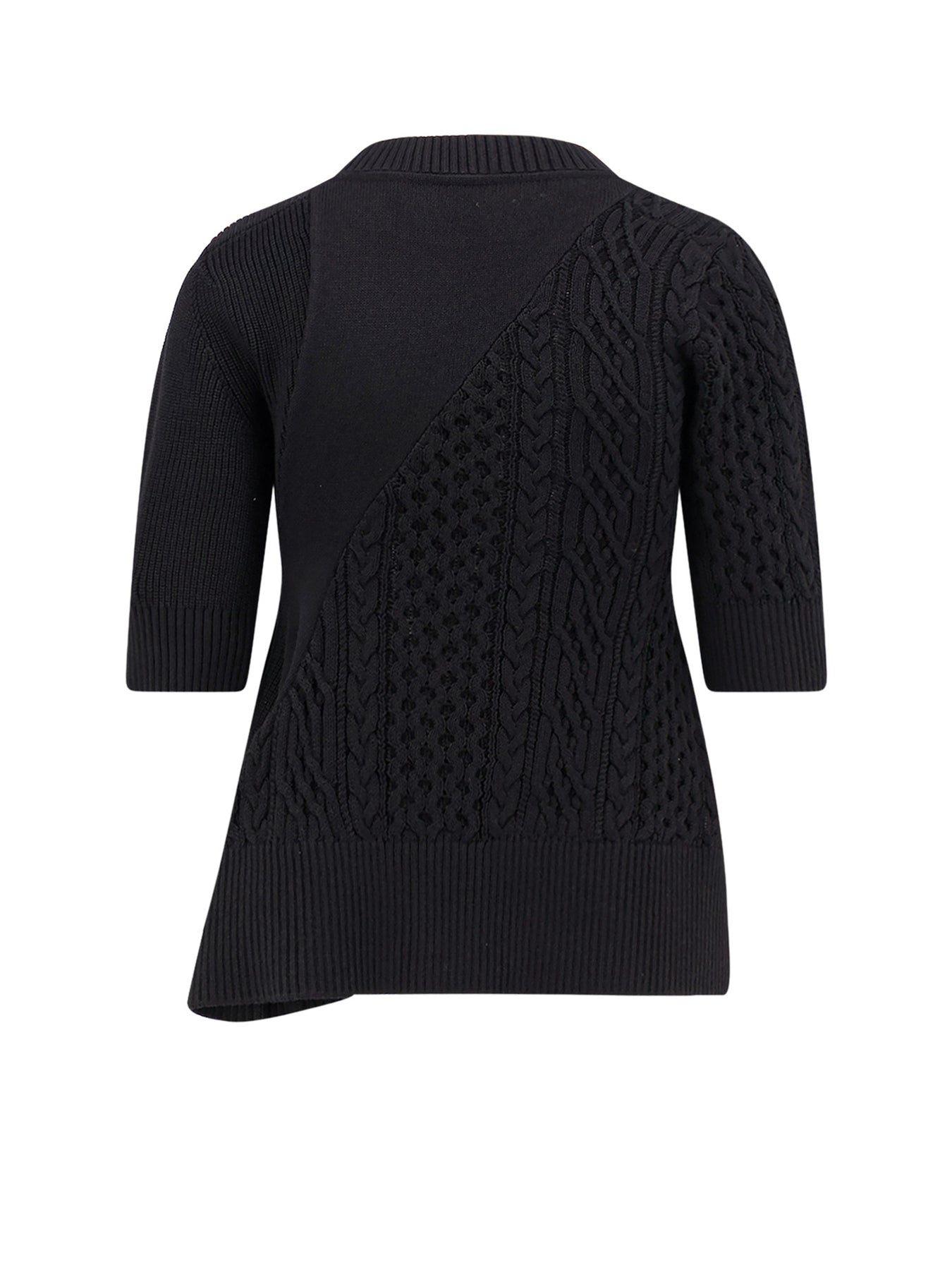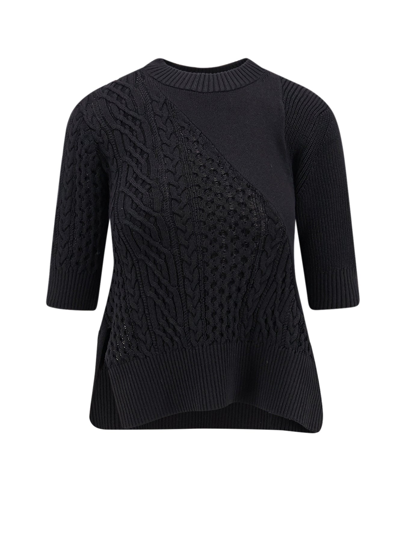 Ribbed crew-neck Three-quarter sleeves Cable knit Side slits 57% cotton, 43% polyester SKU: 2508018001