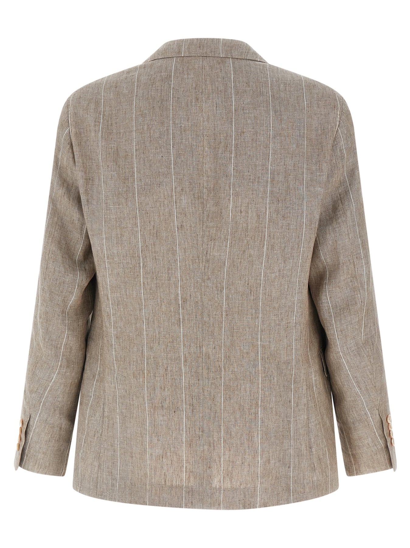 Striped linen single-breasted blazer with 3-button closure, double back split, long sleeves with buttons.
