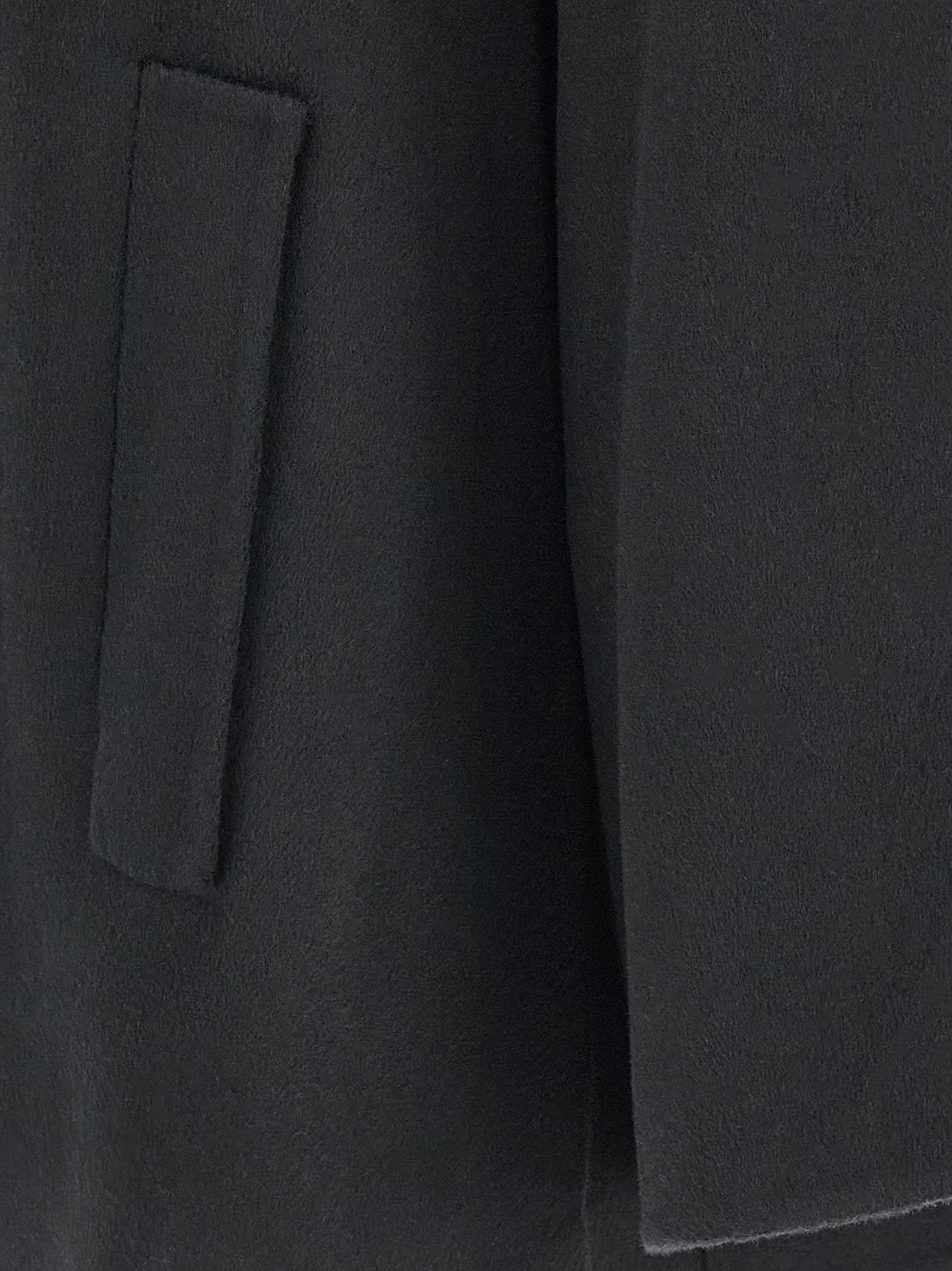 'Hypnotic' double-sided wool blend coat, lavallière high neck, front military-style button closure, pockets, long wide sleeves with dropped shoulders, unlined.