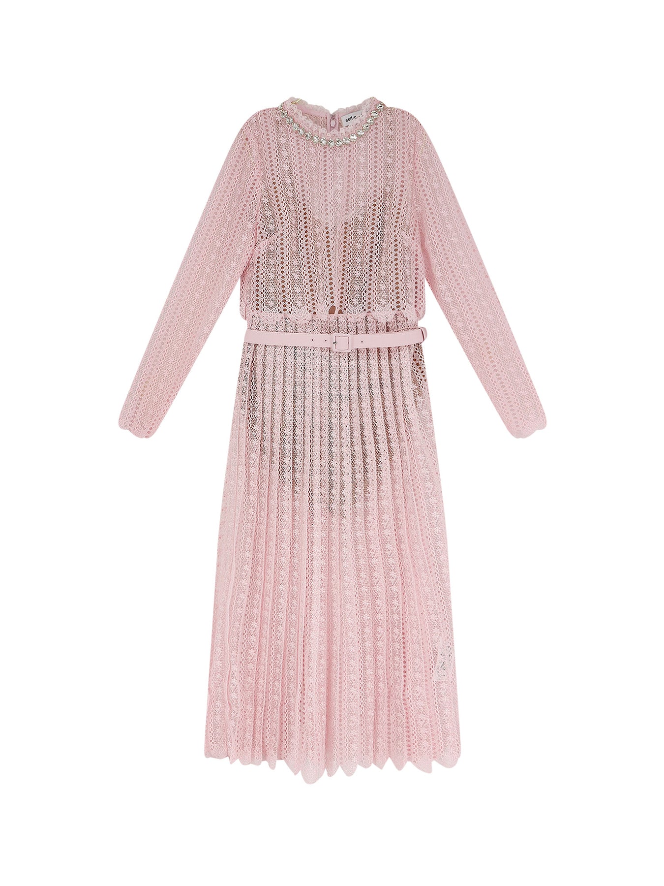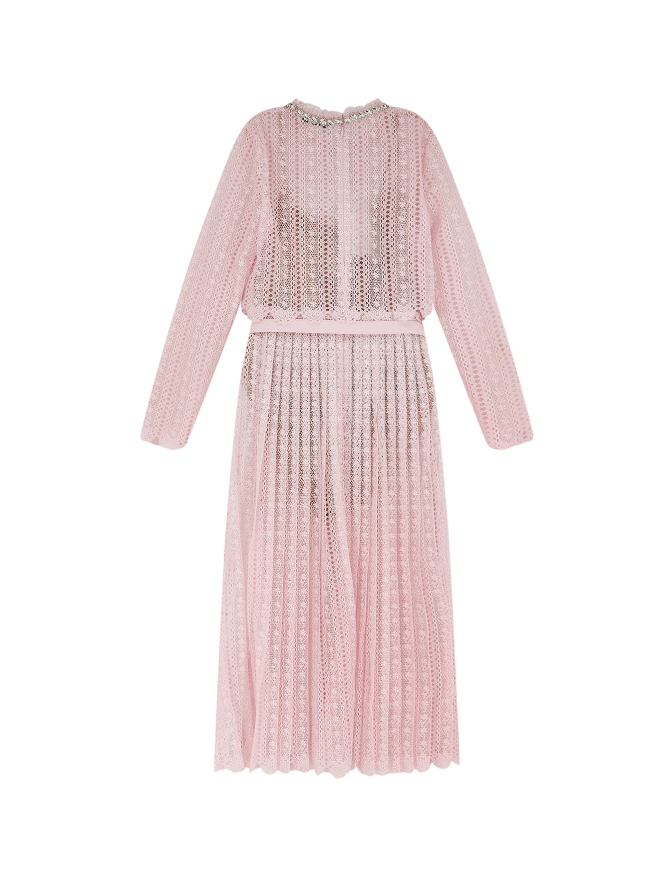 Back zip closure Rhinestone trim Crewneck Long sleeves 100% polyester Lining: 100% polyester SKU: RS26172MPPINK
