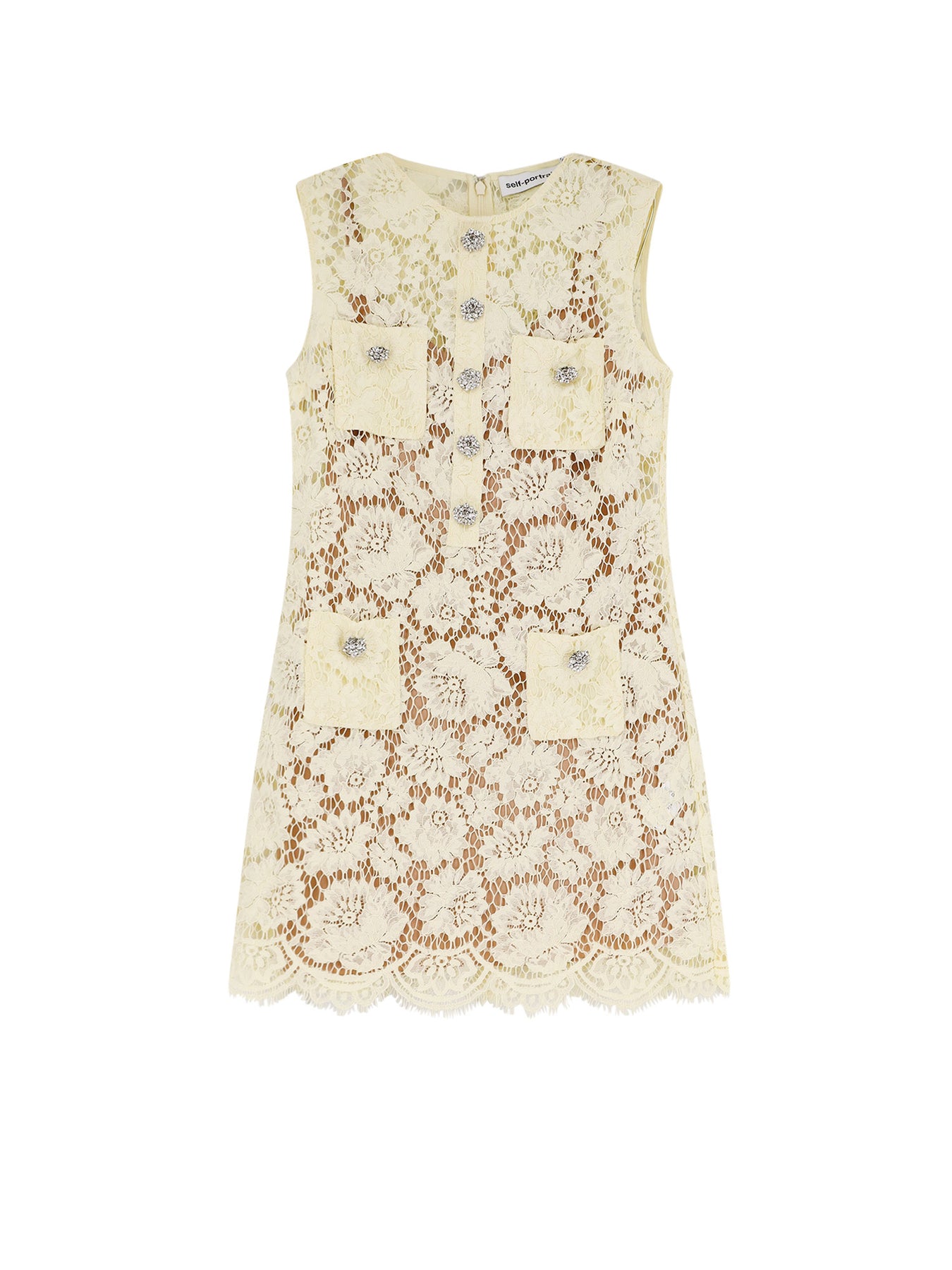 Back zip closure Crew neck Jewel buttons Four front pockets 63% polyamide, 24% cotton, 13% viscose Removable petticoat: 100% polyester SKU: RS26217SYYELLOW