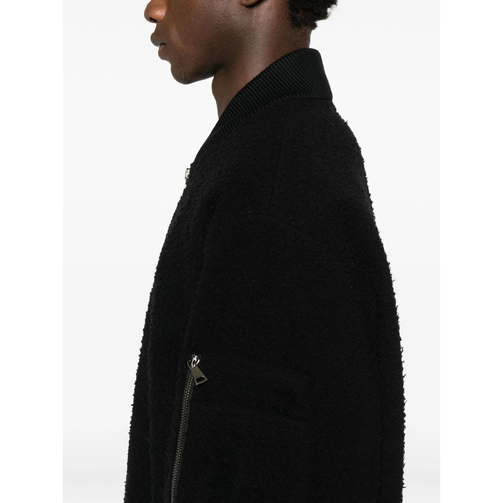 black wool front zip fastening long sleeves side slit pockets zip-fastening pocket at the sleeve