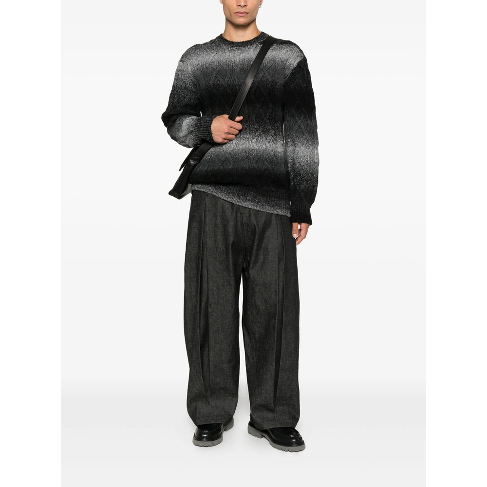 black cable knit ombre effect round neck long sleeves ribbed hem