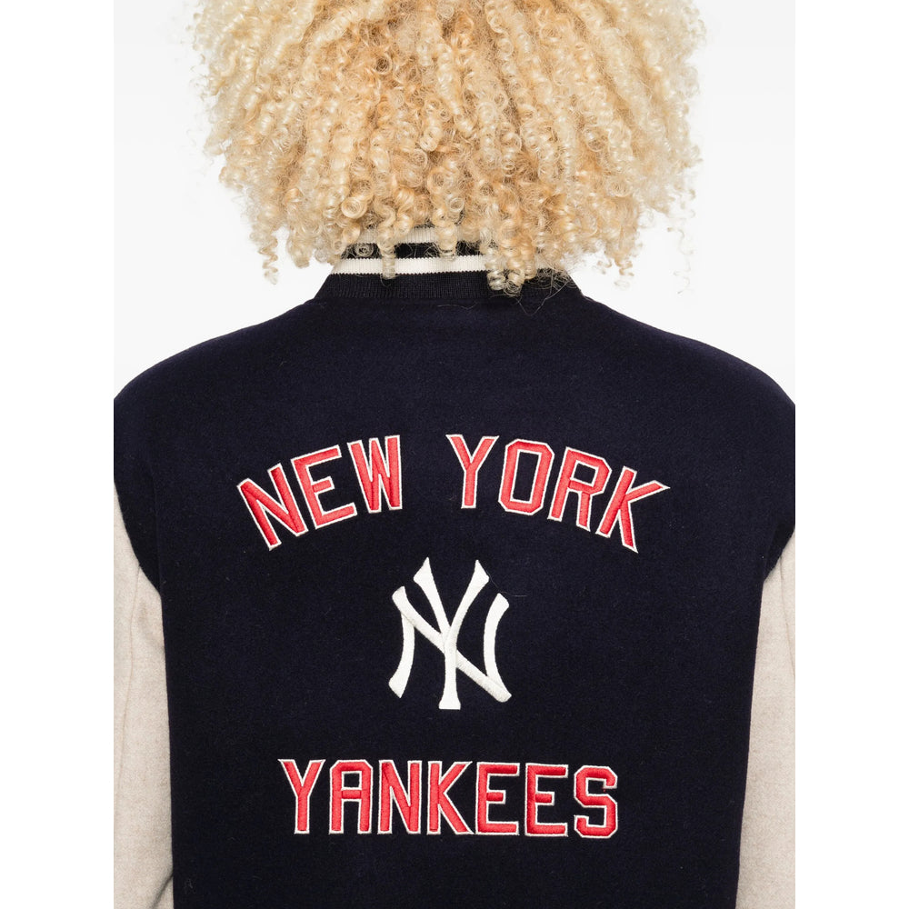 blue wool logo sleeves embroidered logo ribbed hem button fastening