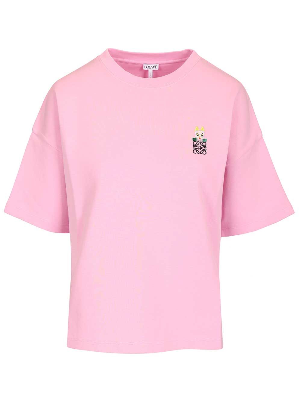 Cotton blend T-shirt by Loewe x Louis Wain, with Futurist Cat embroidery on the chest and embroidered writing on the back, regular fit, standard length and side slits