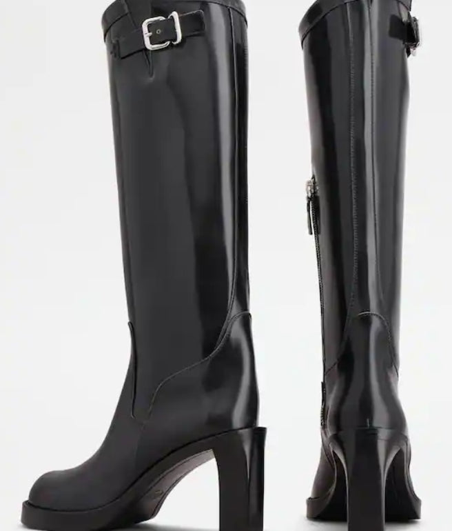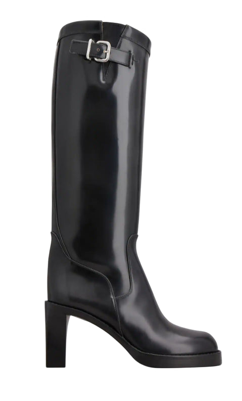 leather black knee-high side zip fastening side buckle fastening