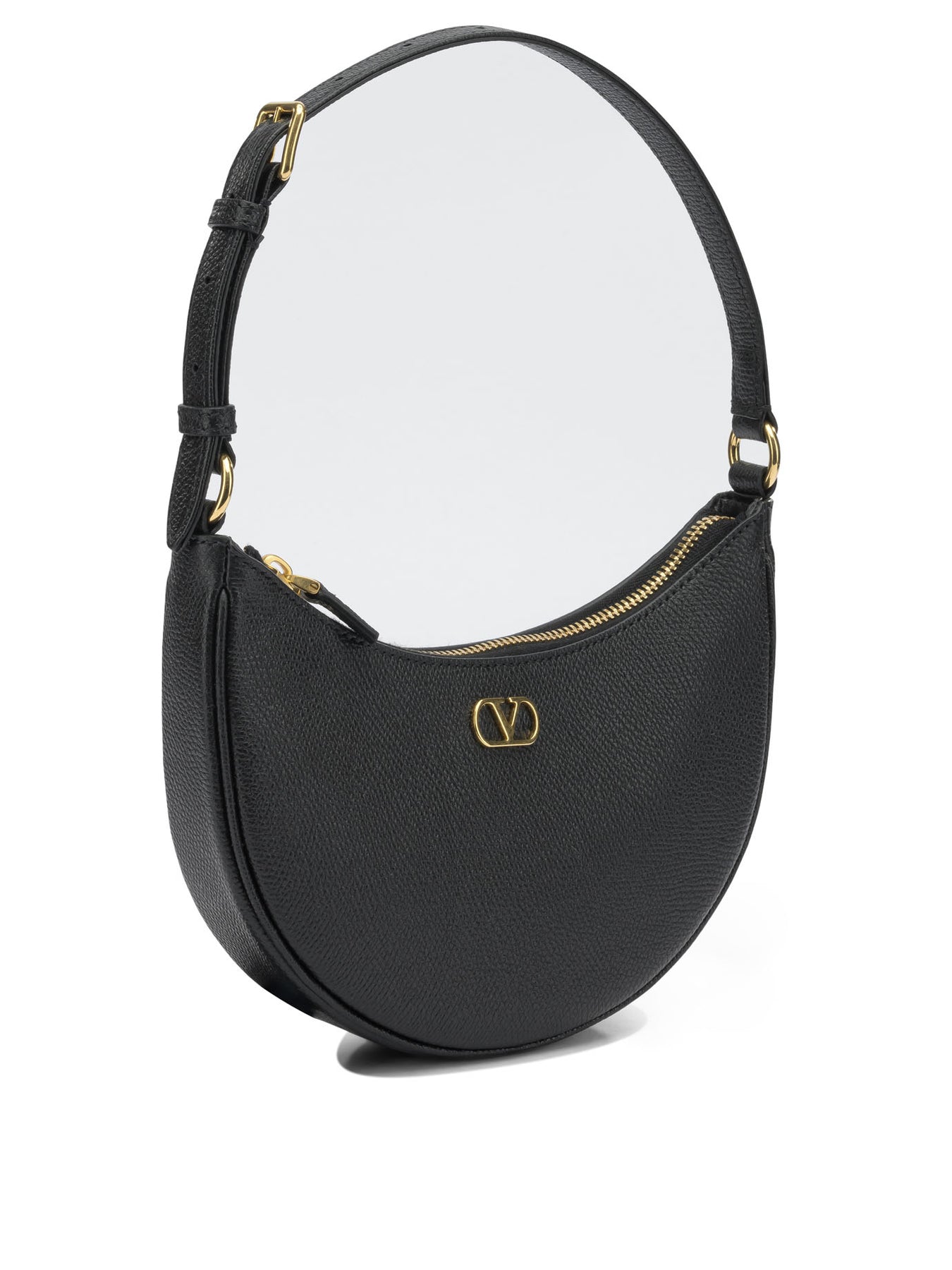 Valentino Garavani small "Mini Hobo" shoulder bag made of calfskin with semi-rigid construction. The design follows a typical curved hobo silhouette, with compact structure and clean lines. The top closure is entrusted to a zipper, while the adjustable shoulder strap allows the length to be varied for shoulder wear. Internally, a patch pocket houses the VLogo Signature logo. || - Top zipper closure - Adjustable shoulder strap - Interior pocket with VLogo Signature logo - VLogo logo applied to the surface - Smooth finish - Metal hardware