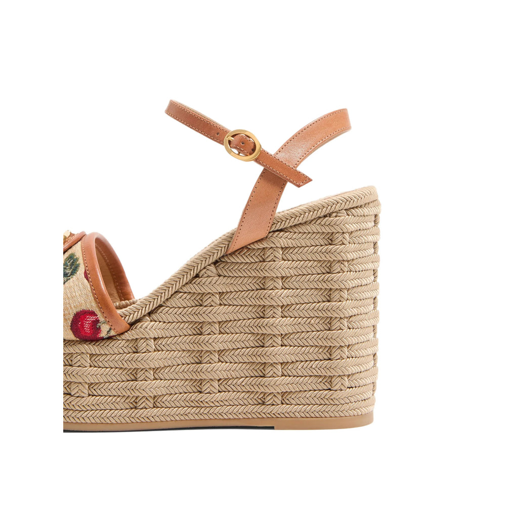 sand beige buckle-strap fastening high wedge heel branded insole platform sole