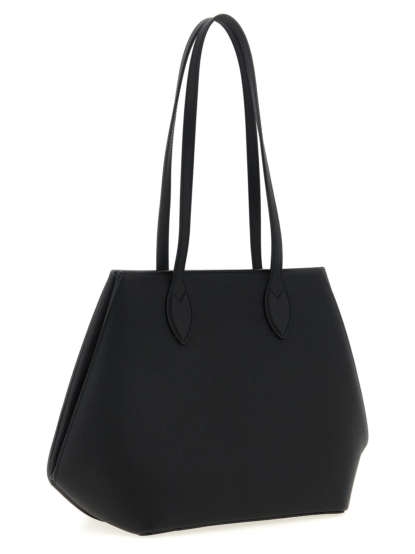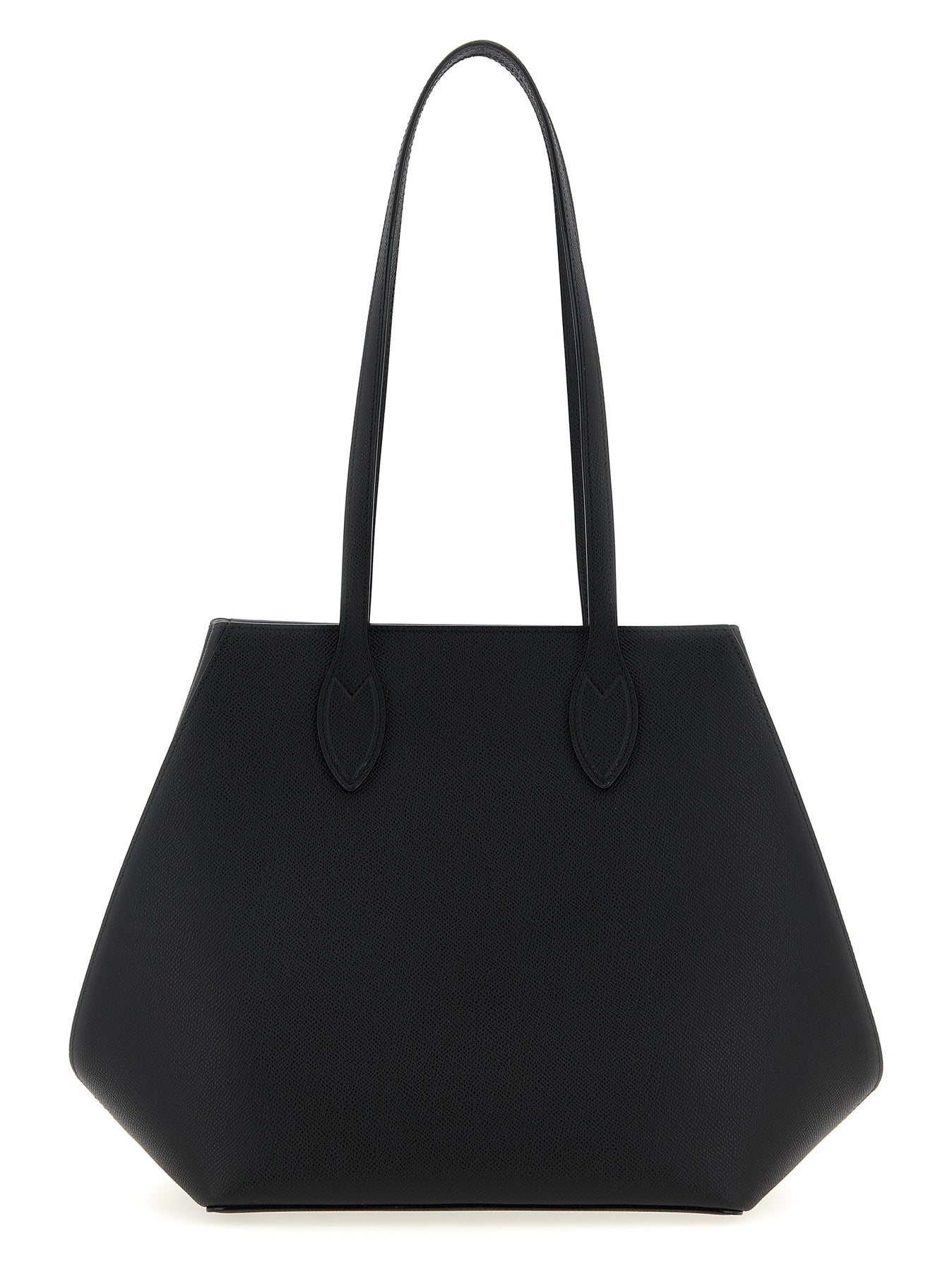 Millepunte Soft 'Vivi' leather midi shopping bag with hand-painted Costa piping, suede lining, double fixed handle, magnetic closure, foldable corners with inner strap, and removable clutch.