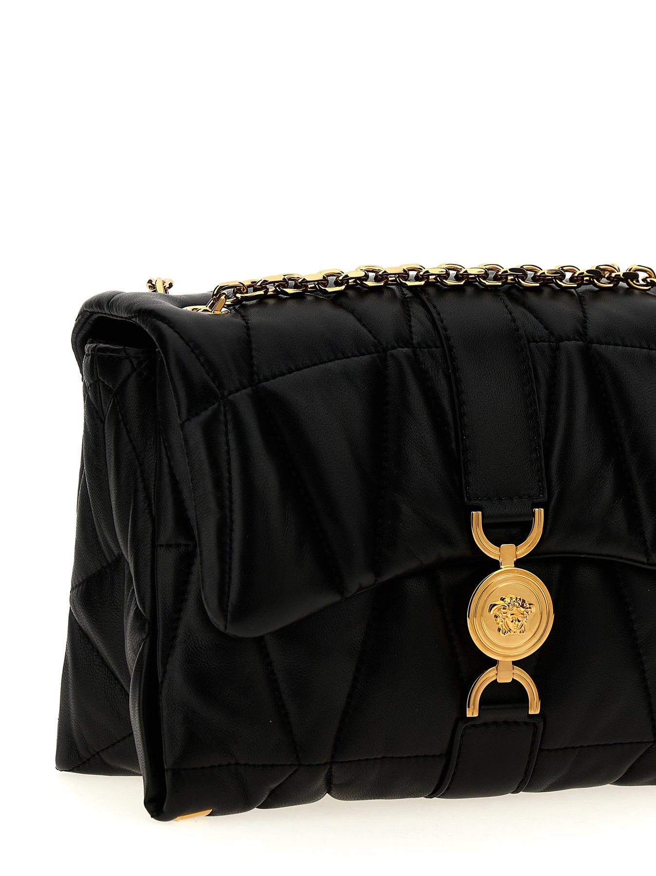 'Kleio' shoulder bag in quilted plongé nappa leather, magnetic flap closure with 'Medusa'95' metal detail, sliding chain shoulder strap.