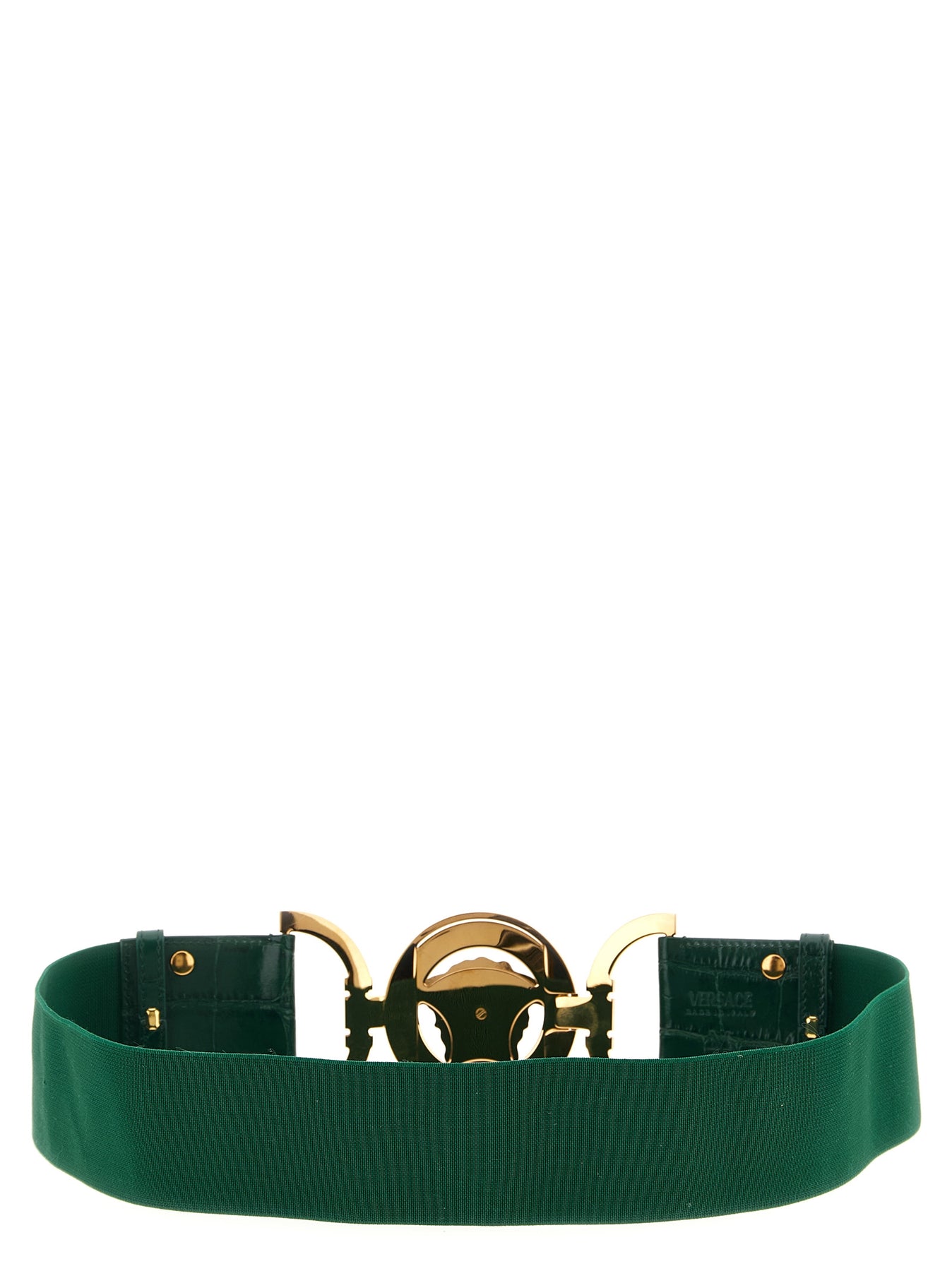 Elastic belt with tone-on-tone coconut-effect calf leather details and 'Medusa '95' snap metal buckle.