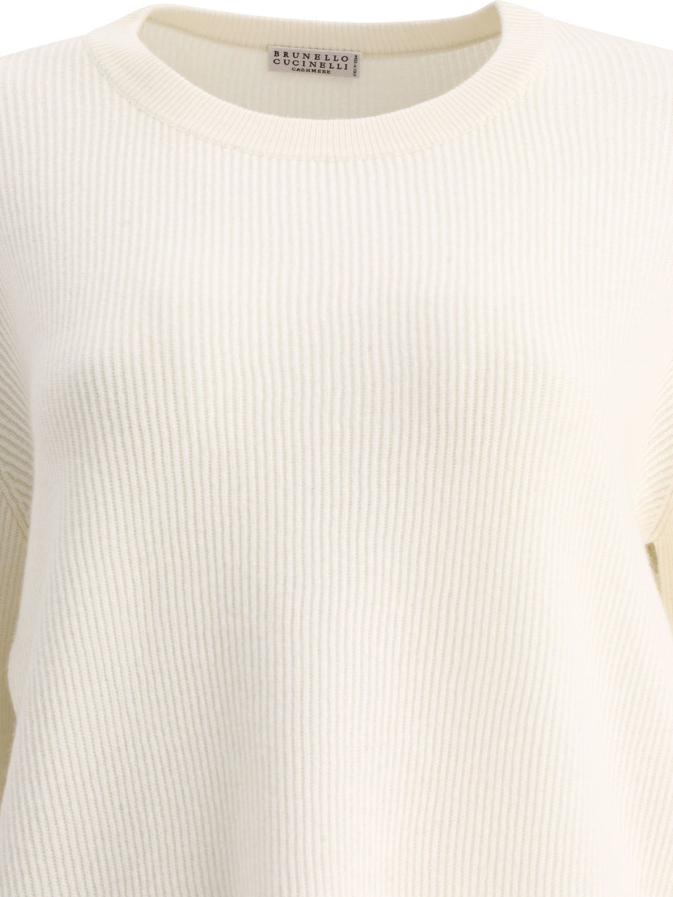 Cashmere English Rib Sweater With Monili Knitwear White