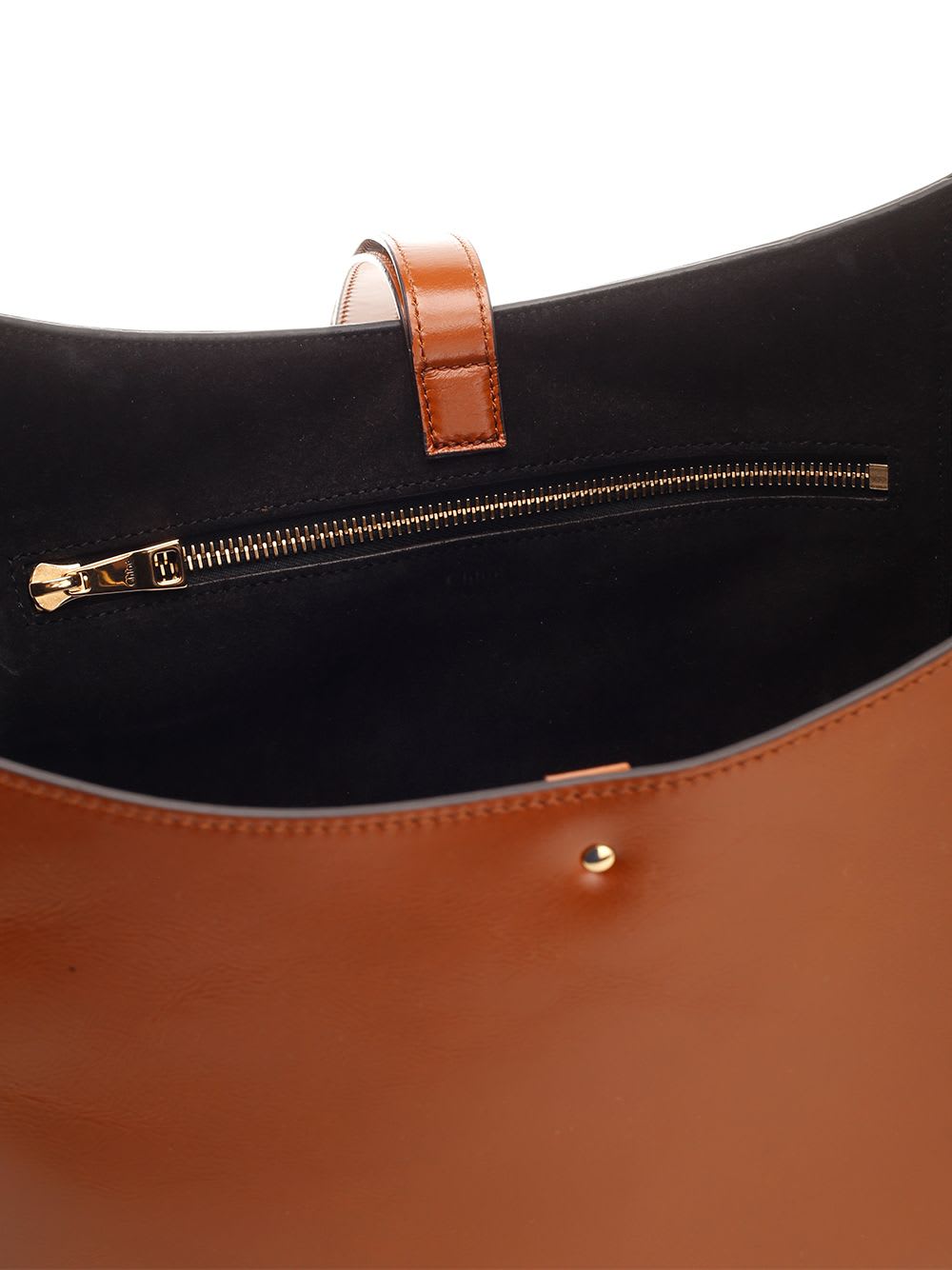 "Marcie" small hobo bag from Chloè, in shiny calfskin with tassel closure, one main compartment and one internal zip pocket.